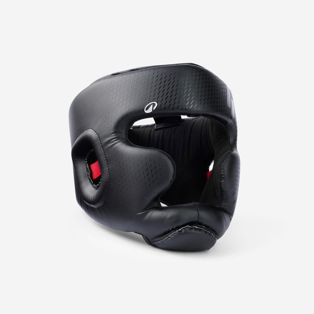 Ce casque intégral protège le menton, le front, les oreilles et les pommettes lors de vos séances de boxe avec partenaire tout en garantissant stabilité et large champ de vision.