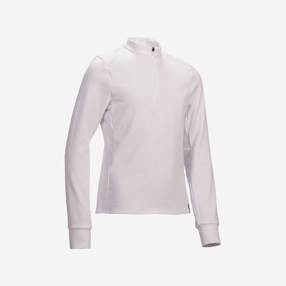 Polo de concours équitation manches longues chaud enfant - 500 blanc