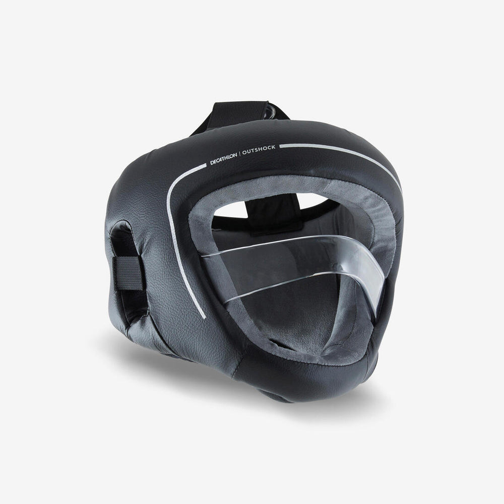 Pour vous proposer une protection intégrale tout en garantissant un excellent champ de vision et une bonne respiration, nous avons doté ce casque d'une barre translucide. Testée en laboratoire dans des conditions extrêmes, elle est conçue pour résister à des impacts très puissants. Sa finesse, suffisante pour empêcher le passage du poing de votre adversaire, permet de respirer normalement. Sa transparence permet quant à elle de bénéficier du même champ de vision qu'un casque de boxe traditionnel