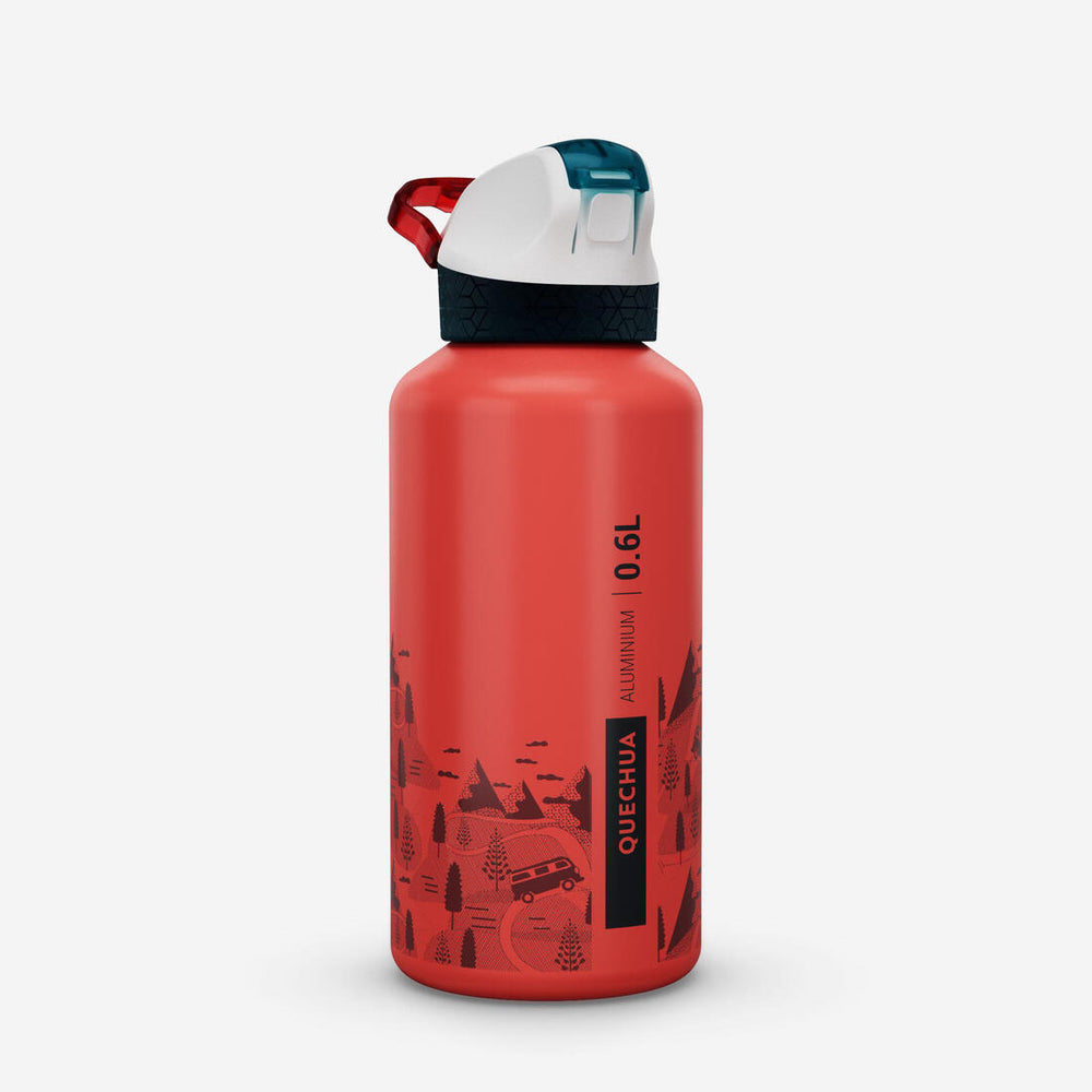 Gourde 500 enfant 0,6l en alu, bouchon instantané, pipette et paille, randonnée