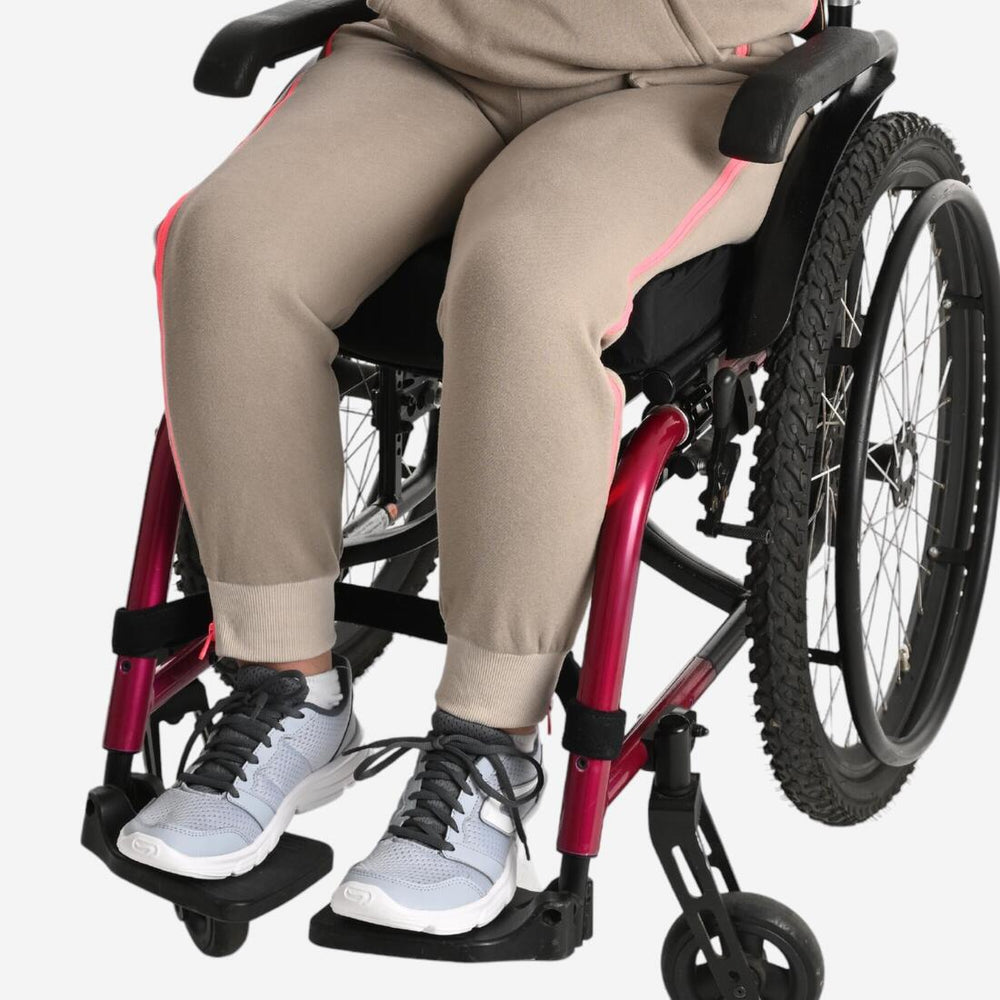 Le pantalon de jogging enfant a été conçu pour faciliter l'habillage grâce au système d'ouverture / fermeture à zip situé sur la partie latérale des jambes. Parce qu'il est parfois compliqué de s'habiller avec des vêtements classiques, l'équipe Sports Adaptés by DECATHLON a conçu un pantalon qui s'ouvre entièrement sur les côtés.