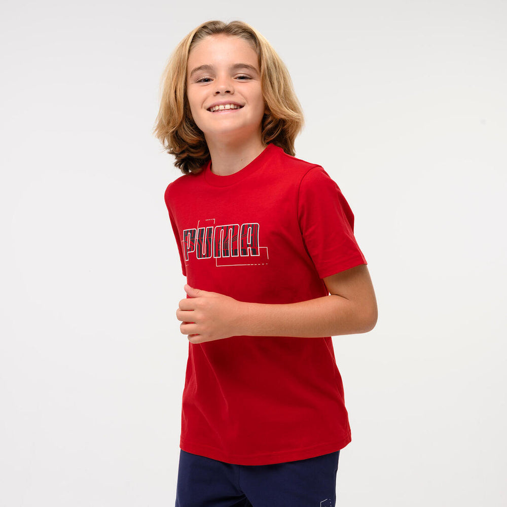 Fabriqué 100 % en coton, ce t-shirt Puma sera parfait pour la vie quotidienne et les activités sportives de votre enfant !