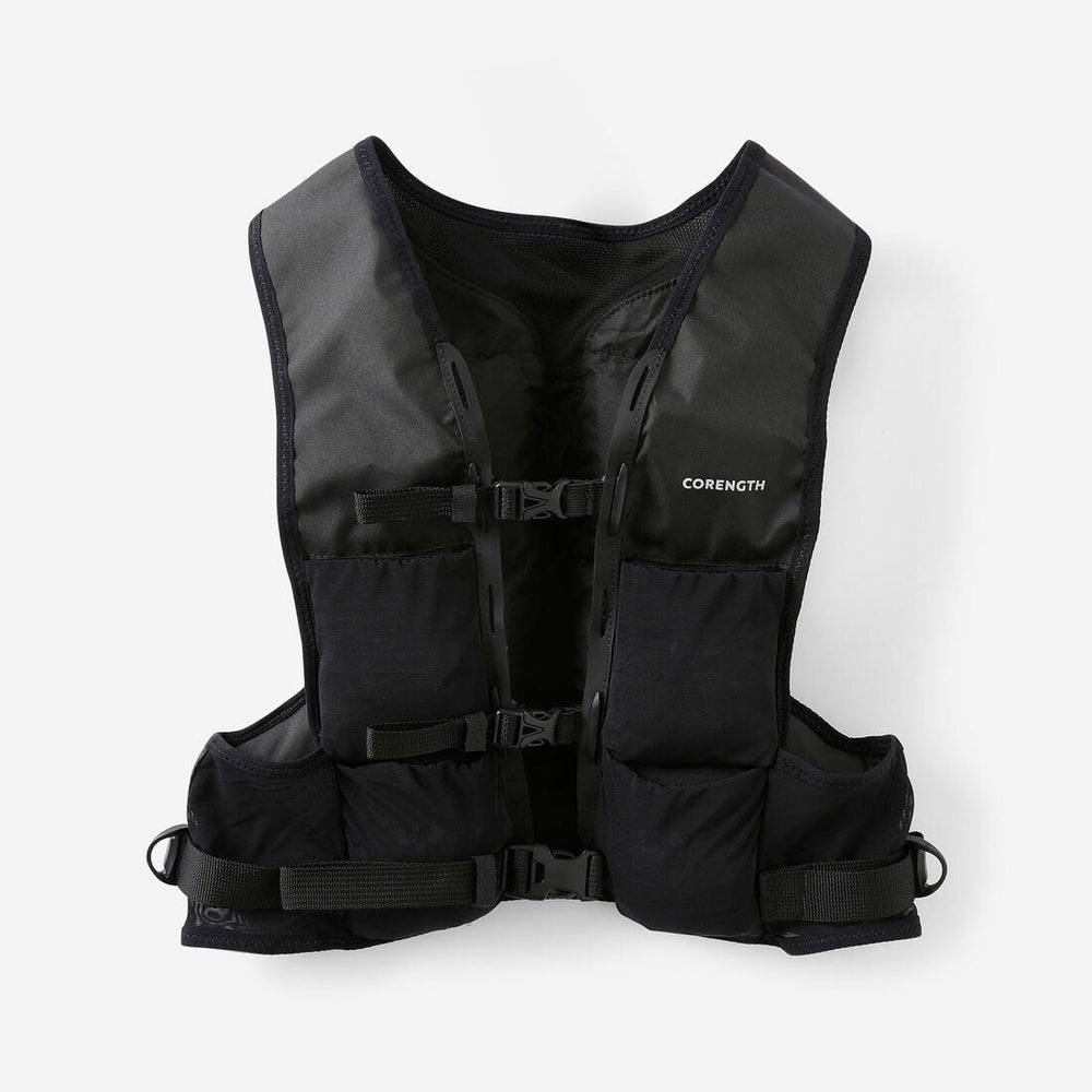 Pour un réglage efficace : - enfilez le gilet, - fermez le gilet grâce aux clips, - serrez-le selon votre taille grâce aux sangles sur le côté. Pour rajouter des poids : - ajoutez les poids de 0,5 kg dans les poches prévues à cet effet, - assurez-vous de les ajouter de manière symétrique.
