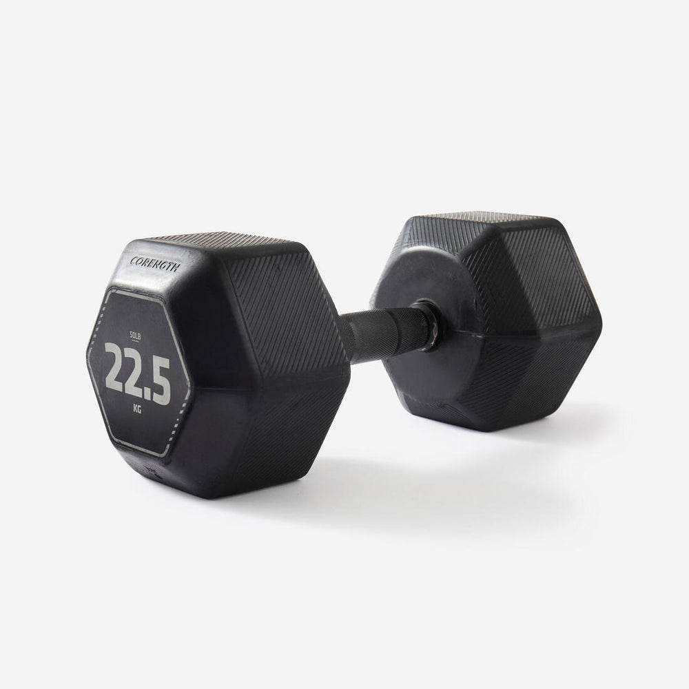 Diversifiez vos entraînements en réalisant une variété d'exercices avec ce dumbbell hexagonal de 22,5 kg, idéal pour renforcer votre musculature.