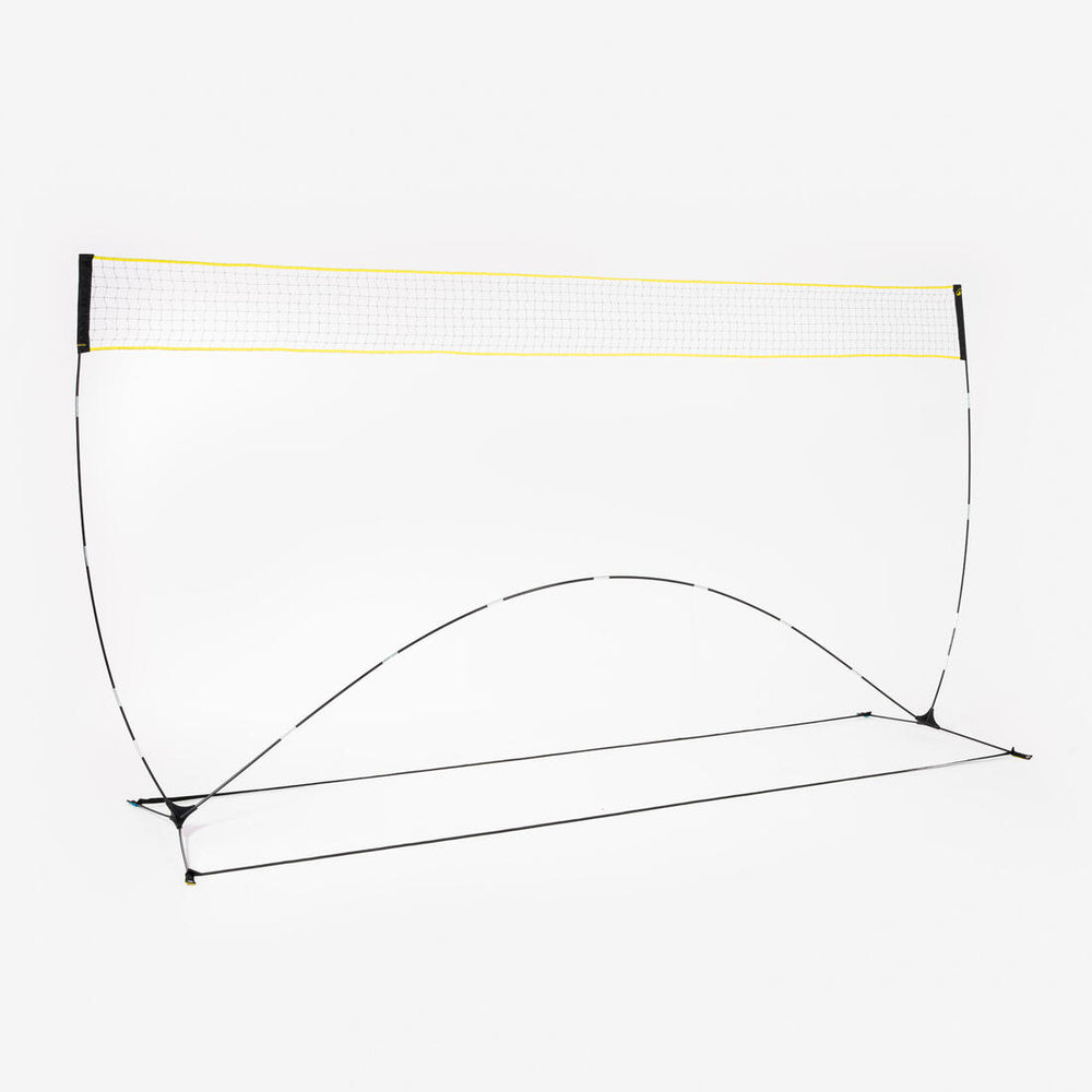 Ce set contient : - Deux poteaux (arceaux en fibre de verre) - Une base autoportante (arceaux en fibre de verre) - 2 sangles de maintien - Un filet de 4 mètres de large. - 4 sardines pour l'ancrage au sol. - 1 sac de transport Poids de l'ensemble : 2 kg