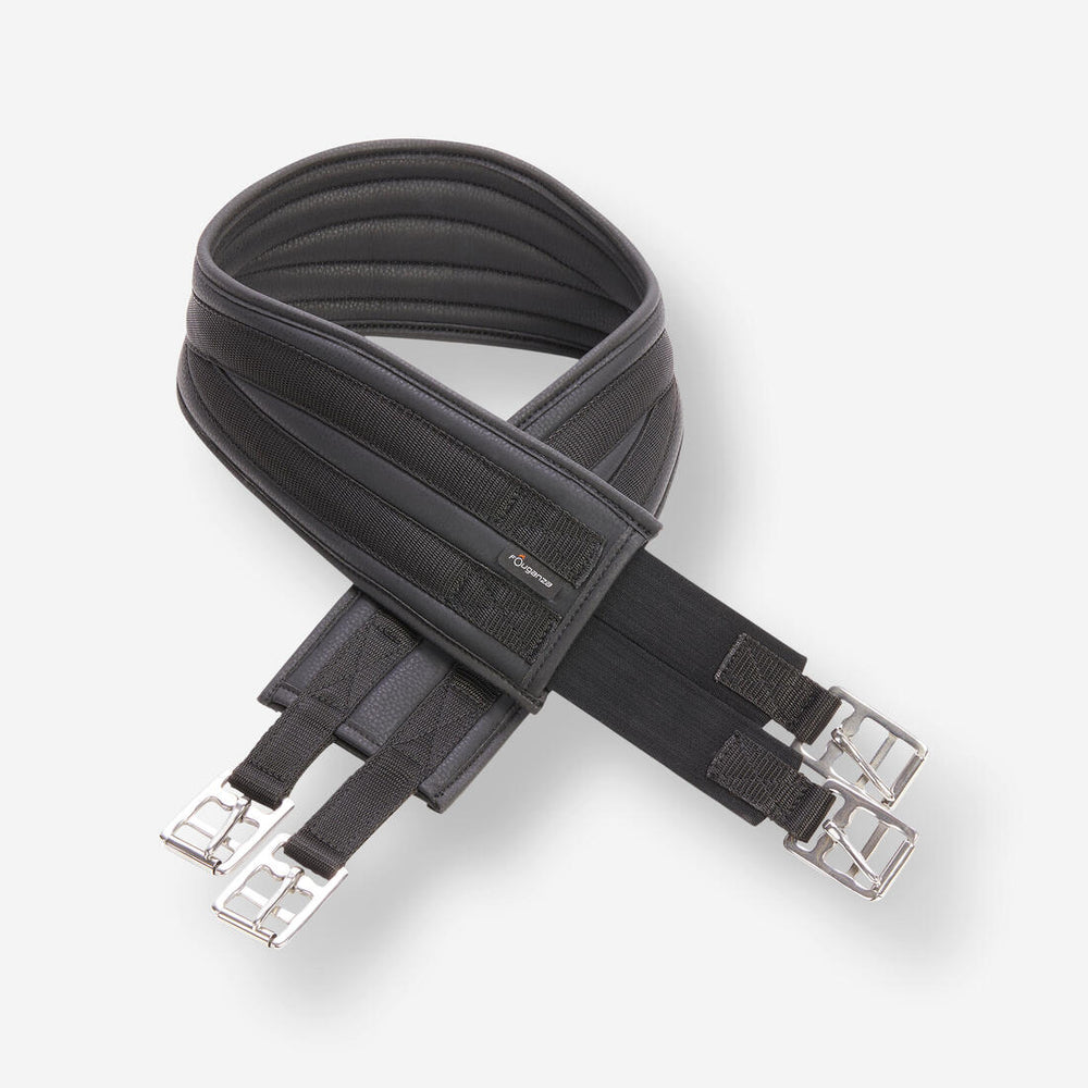 Pour garantir un maximum de confort à votre cheval, notre sangle d'équitation 100 a une forme anatomique et est équipée d'élastiques décalés. Sa matière facile à laver est propre en un coup d'éponge !