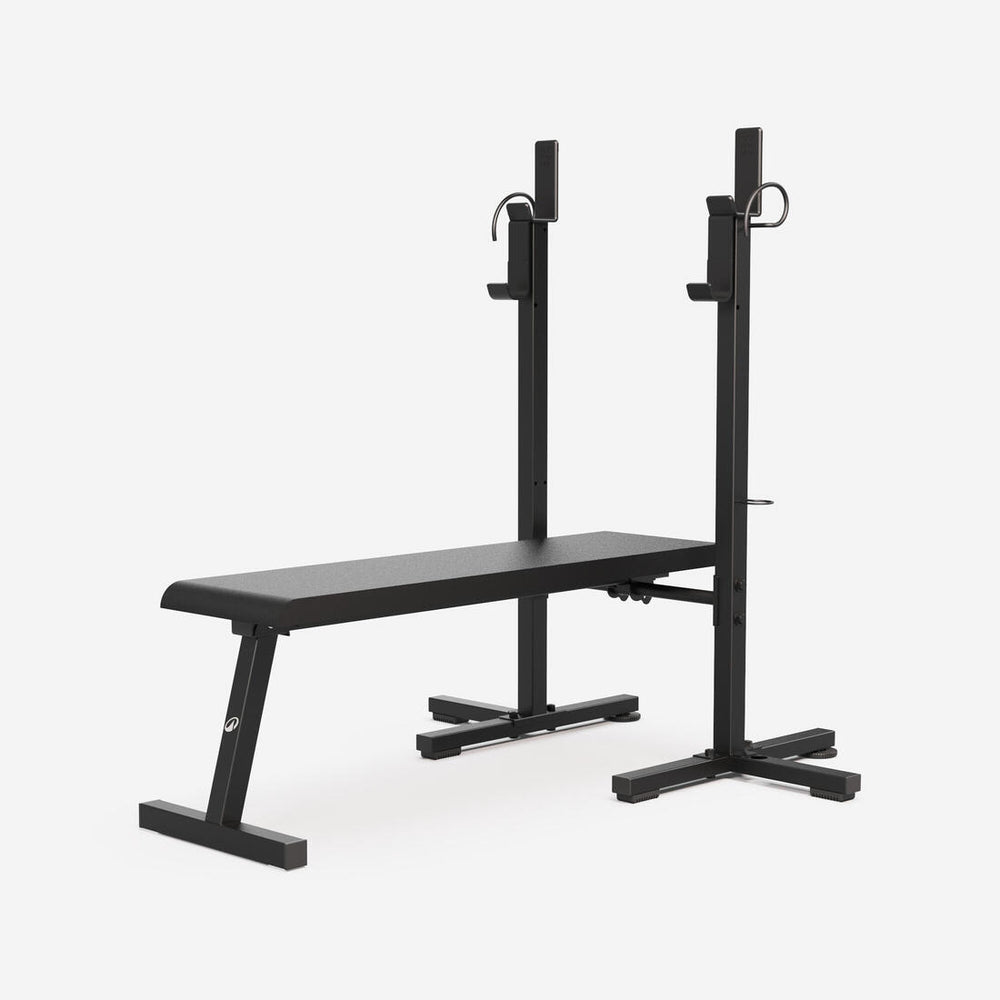 Ne vous fiez pas à sa taille ! Ce banc compact a été conçu pour accompagner efficacement vos séances de musculation. Vous pourrez charger jusqu'à 80 kg sur les chandelles, ce qui est amplement suffisant pour progresser, que vous soyez débutant ou intermédiaire. Confortable et sécurisé, il accueille des utilisateurs jusqu'à 100 kg maximum.Pour vous garantir une solidité à toute épreuve, nous l'avons testé avec des charges atteignant 200 kg, sans aucune défaillance