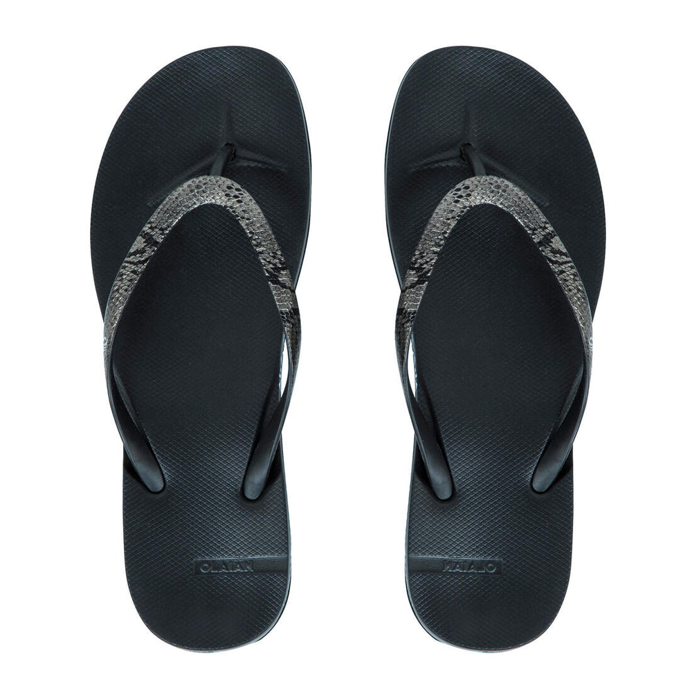 La tong est le chaussant iconique des surfeuses. Au-delà du style de vie et du symbole des spots de surf ensoleillés, c'est aussi le chaussant idéal pour l'avant et après session: simple, pratique, facile d'entretien et surtout facile à enfiler et à désenfiler, même pieds mouillés, sans avoir à utiliser ses mains quand elles sont prises par le matériel.