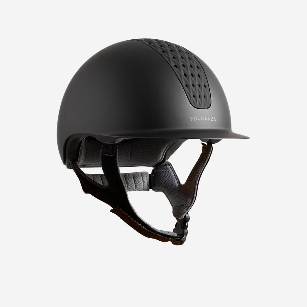 C'était l'un des défis de nos ingénieurs : vous offrir un casque résistant, solide, léger et hyper confortable. Pour y parvenir, l'équipe Fouganza a travaillé sur l'ergonomie de l'attache, qui épouse la forme du visage du cavalier. En polyester, moelleuse et toute douce, elle lui offre un vrai confort ! Le bonnet, amovible, lavable et fixé au casque par un système de scratch, comporte de la mousse positionnée précisément pour réduire les points de pression sur votre tête.
