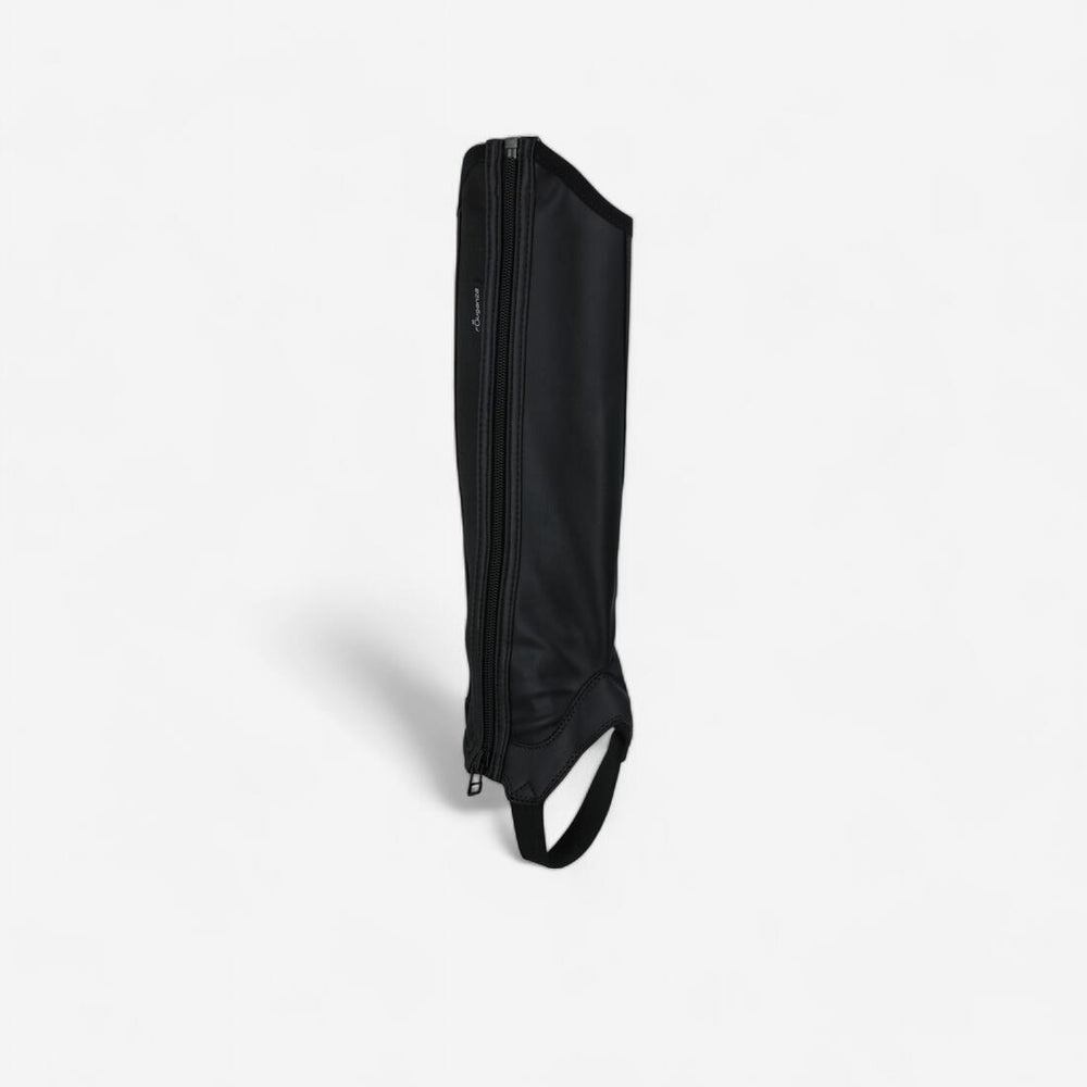 Nos concepteurs cavaliers ont développé ces mini-chaps en synthétique pour vous les jeunes cavalier·e·s débutant·e·s ! L'élastique vous assure un bon galbe.