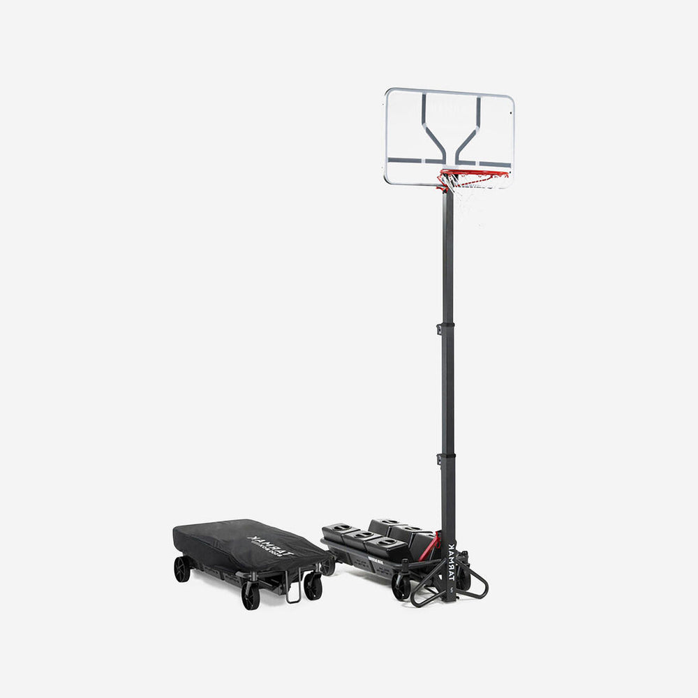 Panier de basket sur pied pliable, planche plexi, réglable 2,4 à 3,05m, b500 box
