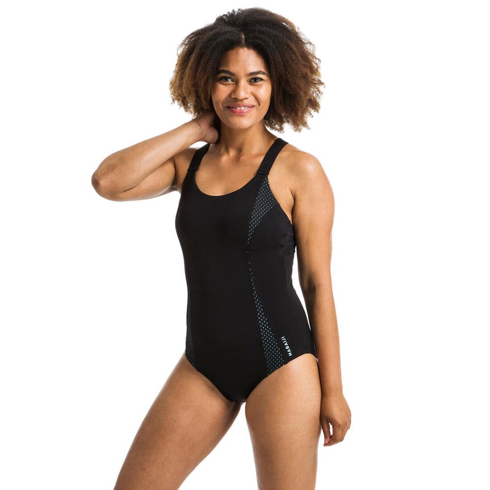 Maillot de bain 1 pièce aquafitness femme elea noir moutarde