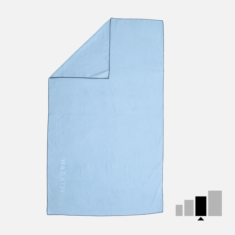 La place dans votre sac est limitée ? Cette serviette de bain microfibre à rayures L 80 x 130 cm ultra compacte vous accompagne partout et sèche très vite