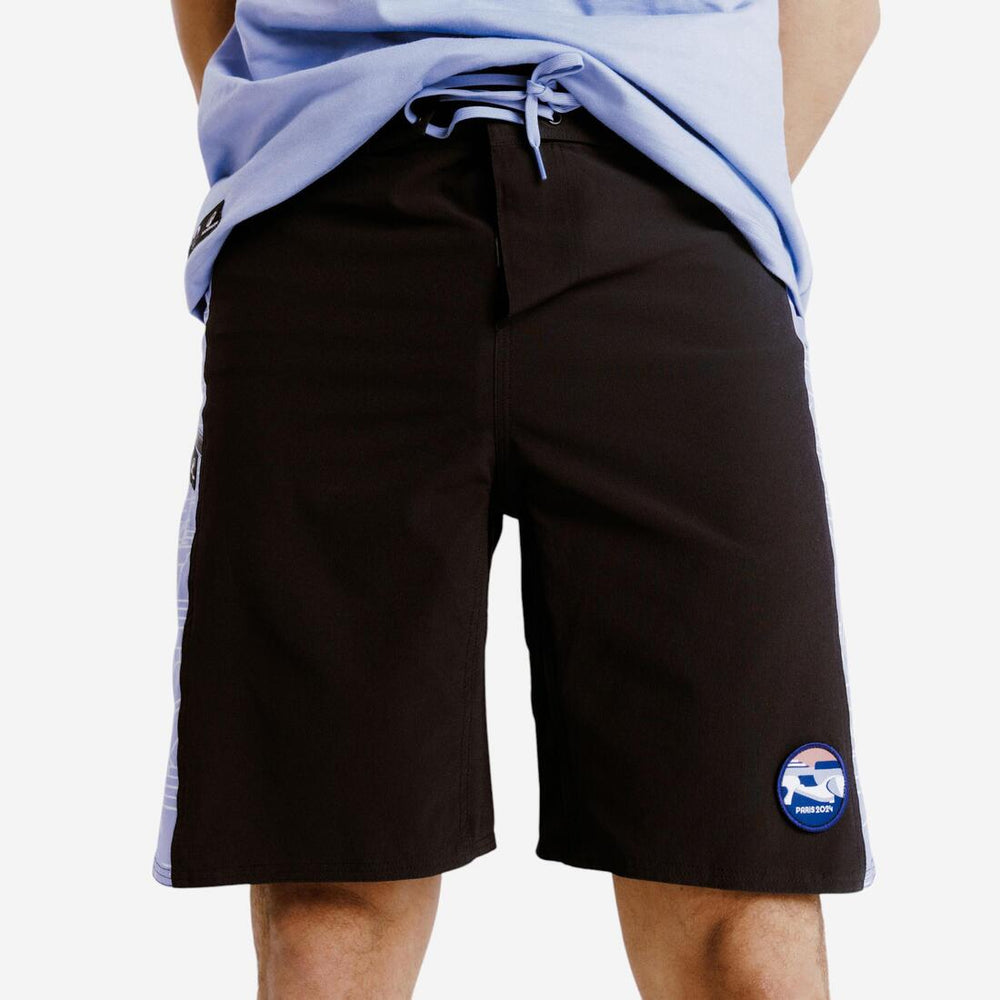 Portez ce short de bain inspiré des 4 nouveaux sports des Jeux Olympiques de Paris 2024 : breaking, skateboard, surf et escalade.