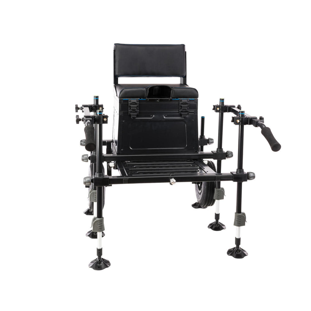 Station CSB ADJUST BOX : - 1 Casier - 1 Jeu de séparateurs - 6 Pieds (4 amovibles télescopiques + 2 amovibles) - 2 Roues - Coussin bloc talon - Ponton - Poids : 18 kg