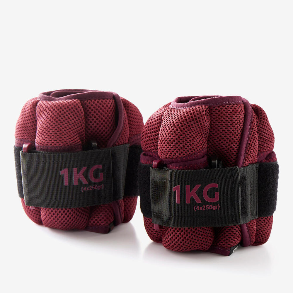 Poids pour chevilles & poignets 2*1 kg réglables - bordeaux