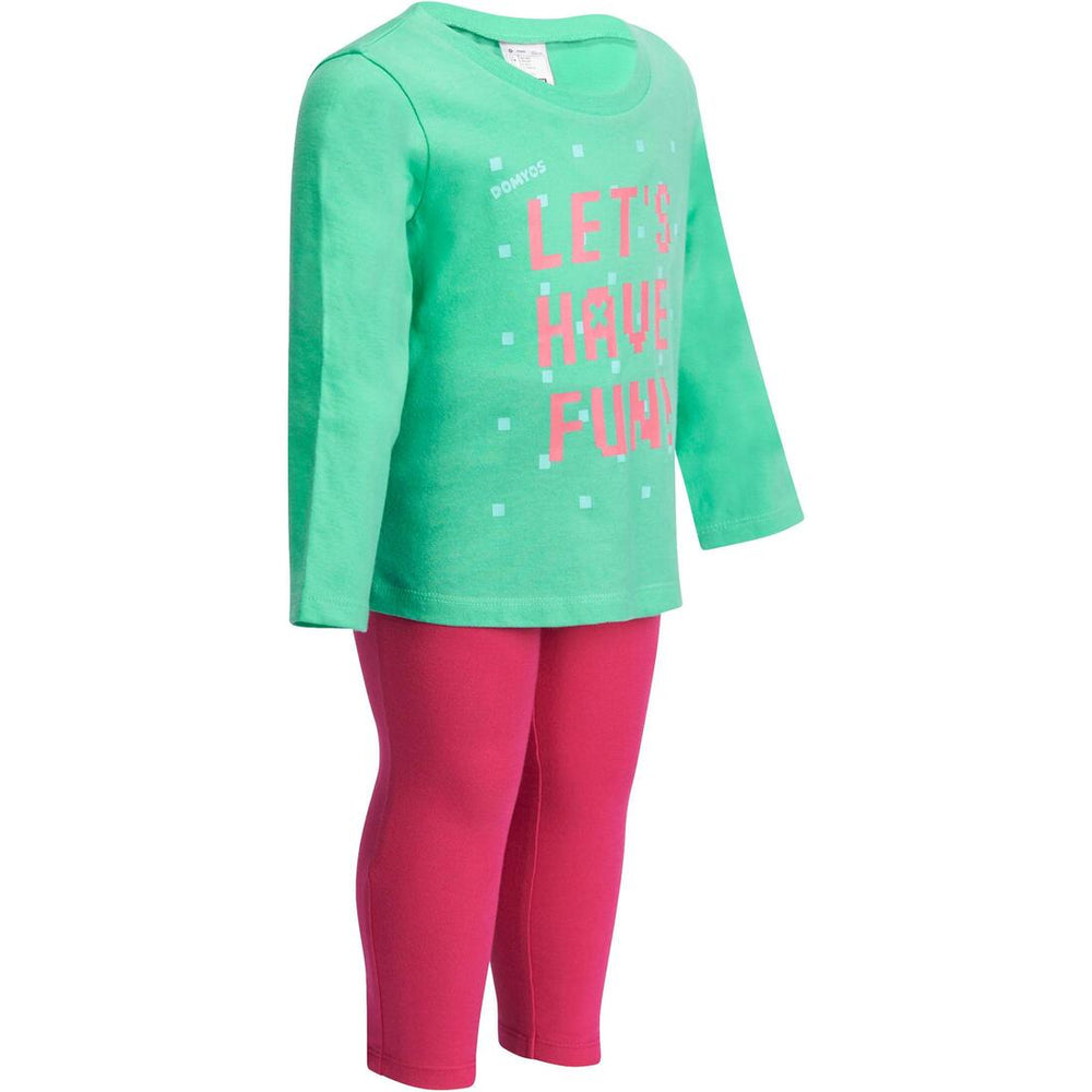 Un ensemble composé d'un tee shirt manche longue imprimé, et d'un legging. Très pratique pour un achat rapide haut + bas. Pour pratiquer la bébé gym et ne pas avoir froid.
