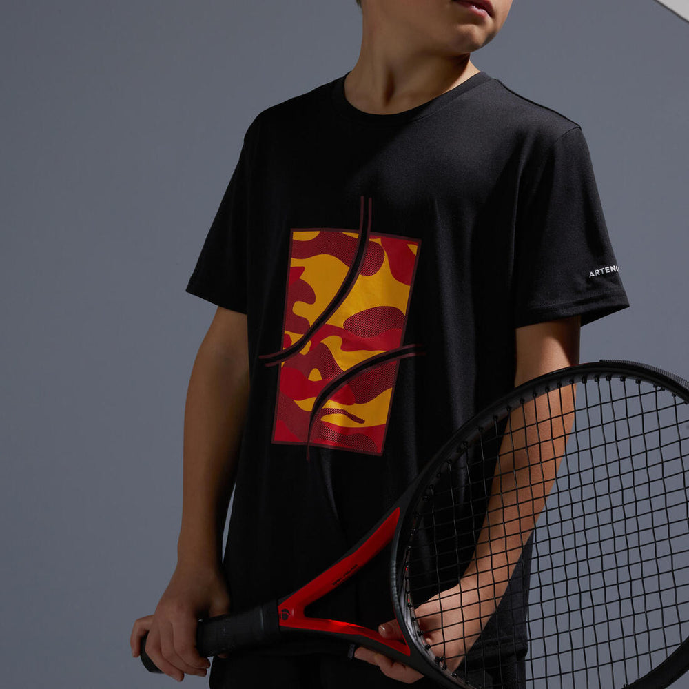 Ce t.shirt de tennis enfant offre un confort optimal. Vous apprécierez son tissu léger et respirant. Son style et son graphisme tennis séduiront votre futur champion.