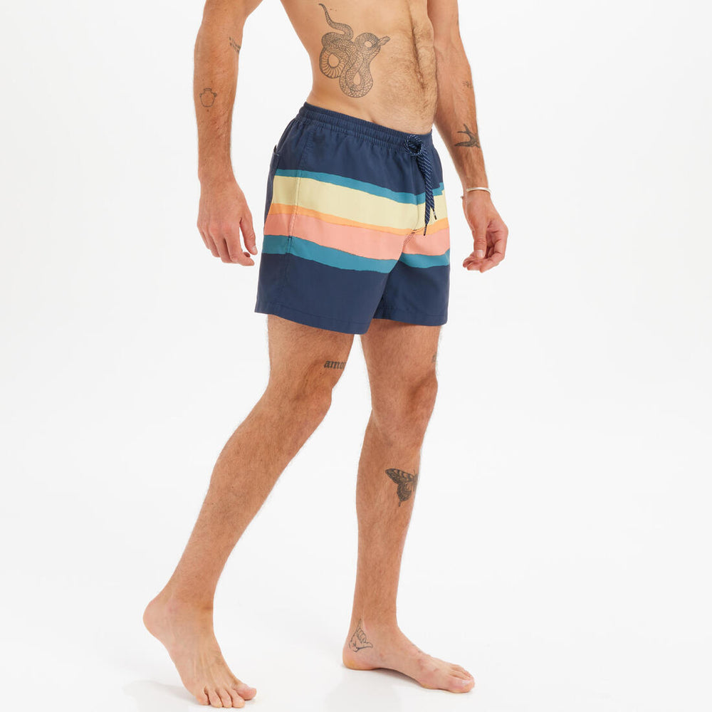 Un short de bain à la coupe courte avec ceinture élastiquée, cordon de serrage et slip intérieur mesh. Poches sur le côté et à l'arrière avec œillet de drainage. Cordon porte clés à la taille.