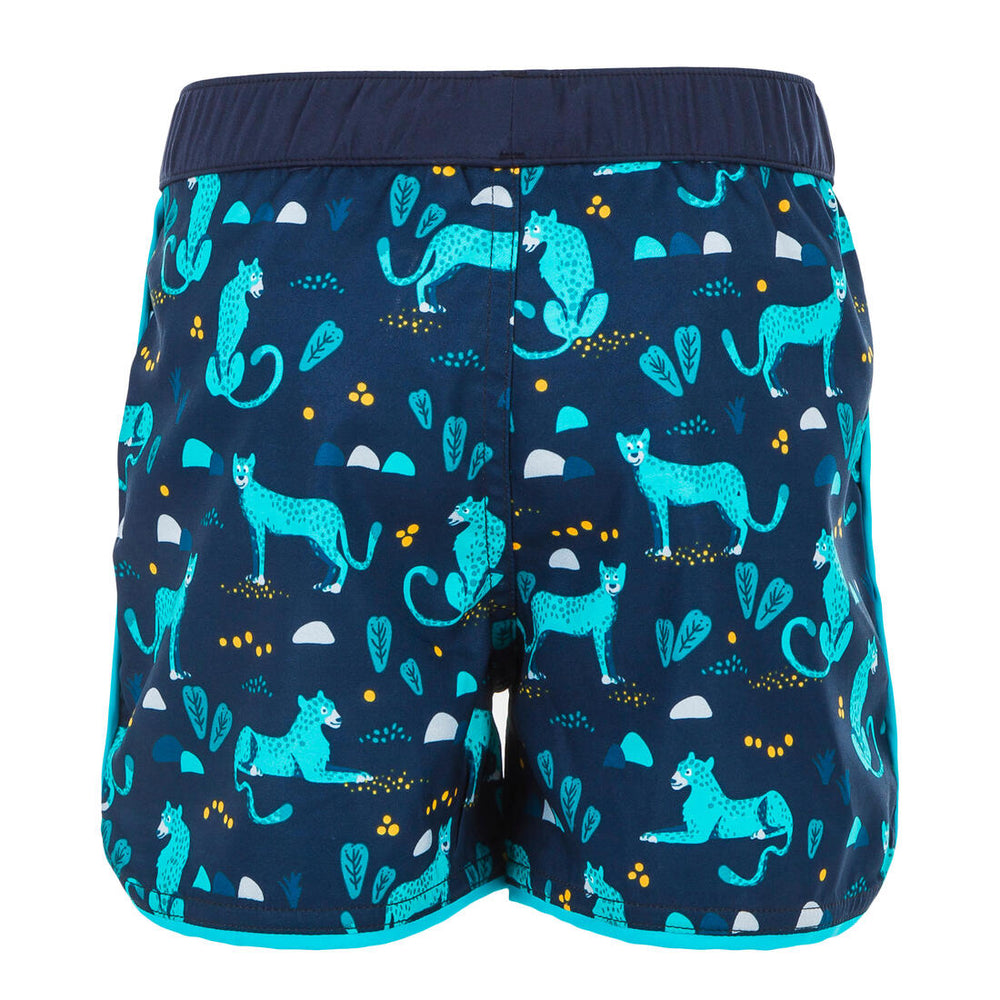 La ceinture élastique de ce short de bain permet un ajustement précis à la taille de l'enfant. Sa coupe ample procure confort dans les mouvements et permet l'évacuation rapide du sable ou autre corps qui pourrait irriter la peau.