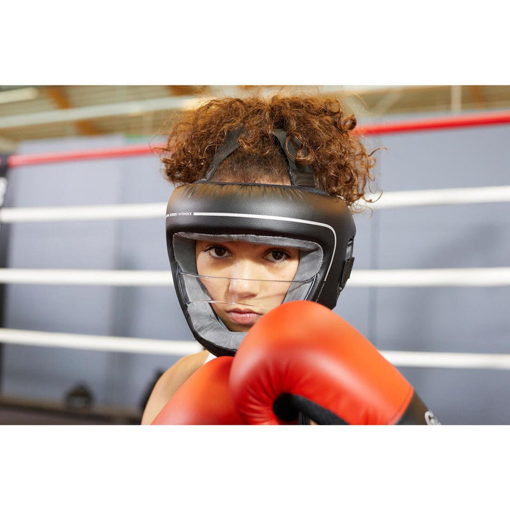 Pour vous proposer une protection intégrale tout en garantissant un excellent champ de vision et une bonne respiration, nous avons doté ce casque d'une barre translucide. Testée en laboratoire dans des conditions extrêmes, elle est conçue pour résister à des impacts très puissants. Sa finesse, suffisante pour empêcher le passage du poing de votre adversaire, permet de respirer normalement. Sa transparence permet quant à elle de bénéficier du même champ de vision qu'un casque de boxe traditionnel