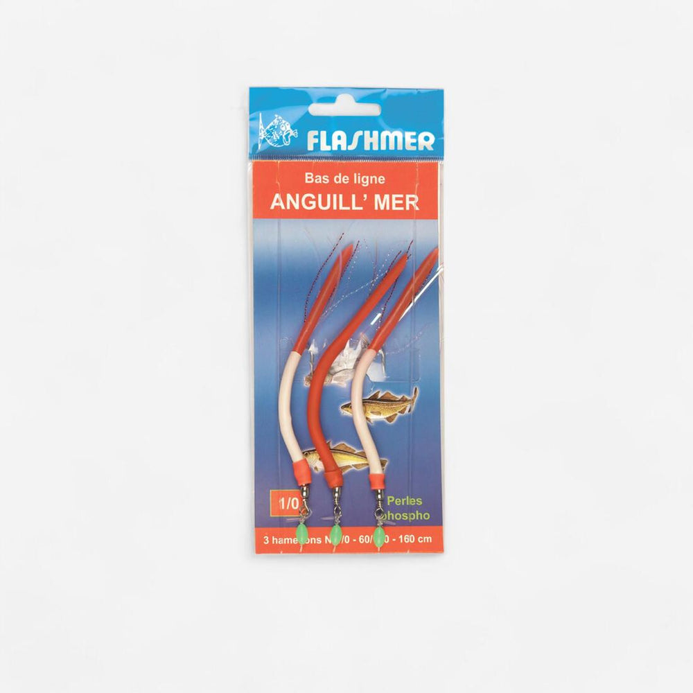 Bas de ligne "anguille mer", perles phosphorescentes, 3 hameçons taille 1/0, diamètre 60/100, longueur 160 cm.