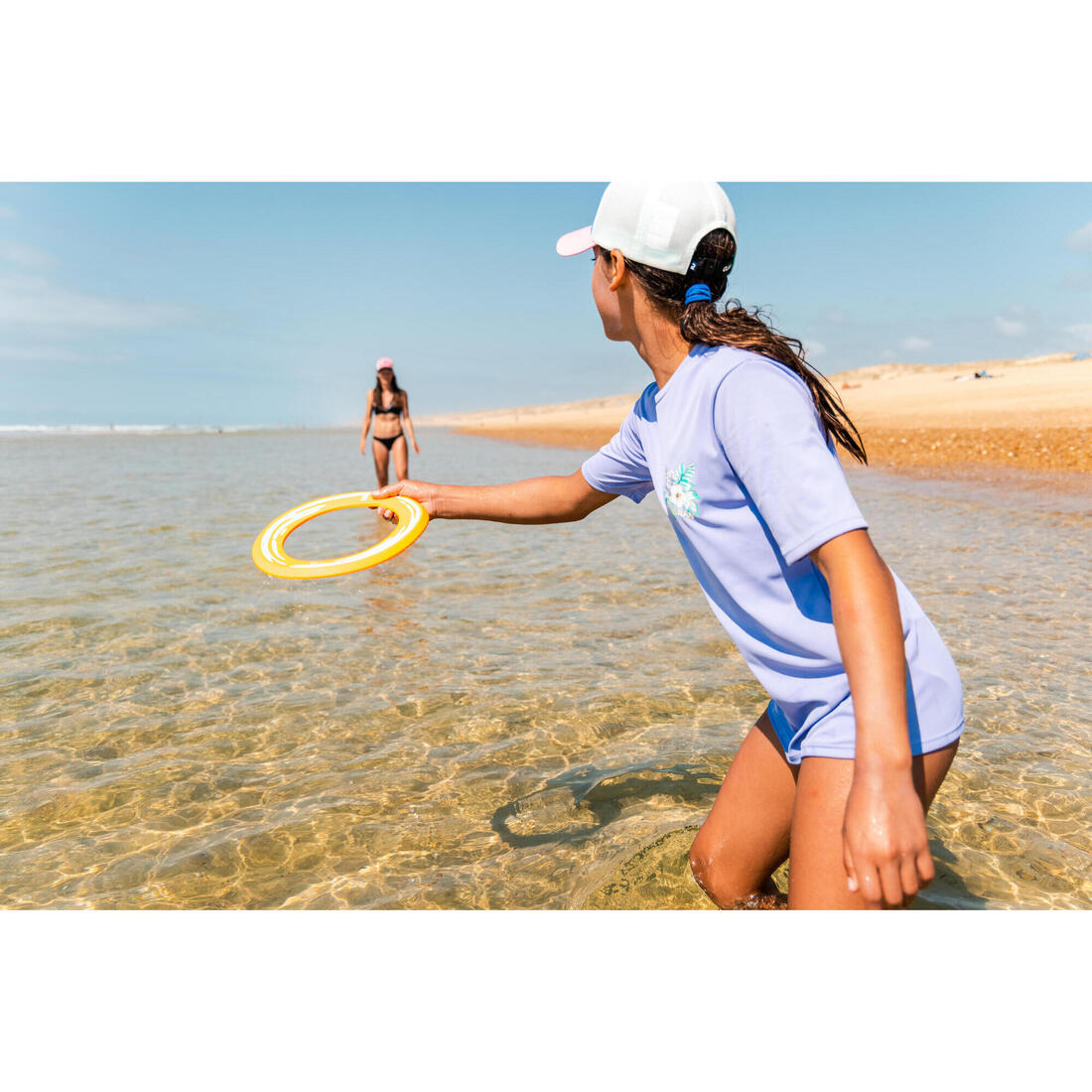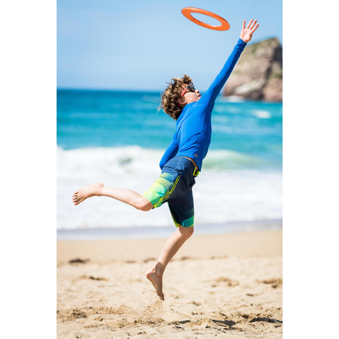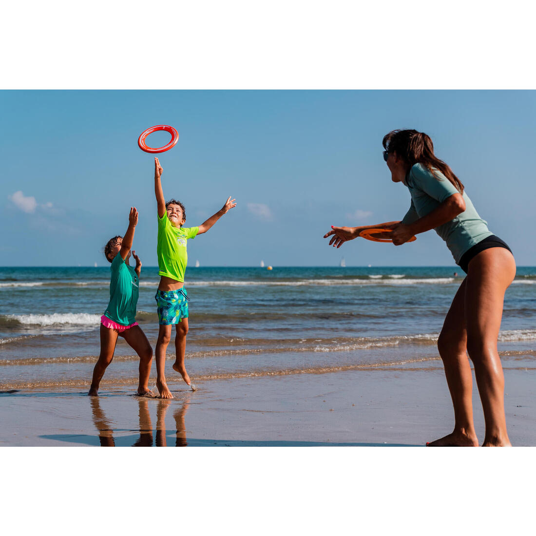 Sa fabrication en mousse et sa forme en anneau permet d'effectuer des distances plus importantes que le disque volant classique et cela en toute sécurité.