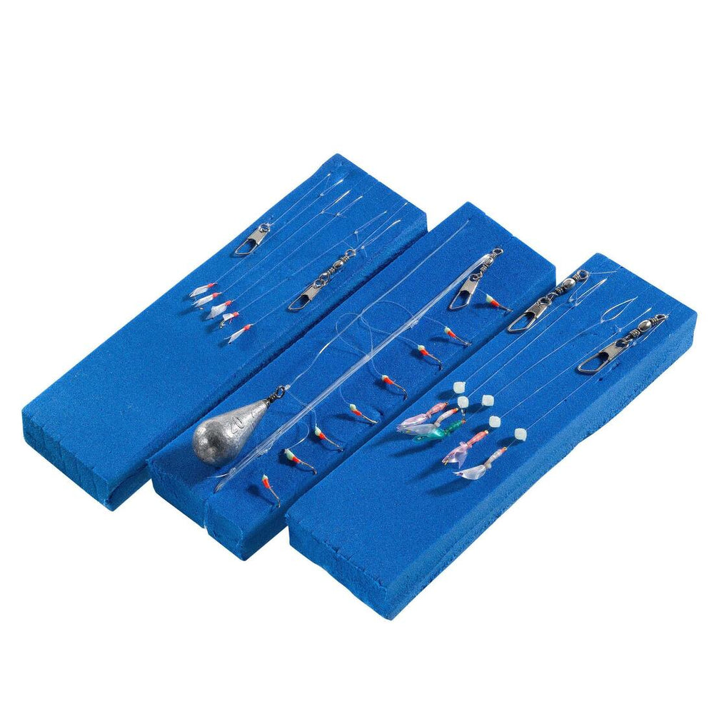 - Fleurette à friture : 105 cm de nylon 14/100 + 6 hameçons N°14 - Mini sprat : 200 cm de nylon 30/100 + 8 hameçons N°16 + plomb Arlesey 20 gr. - Petites larves : 105 cm de nylon 20/100 + 6 hameçons N°14 + perles phosphorescentes.