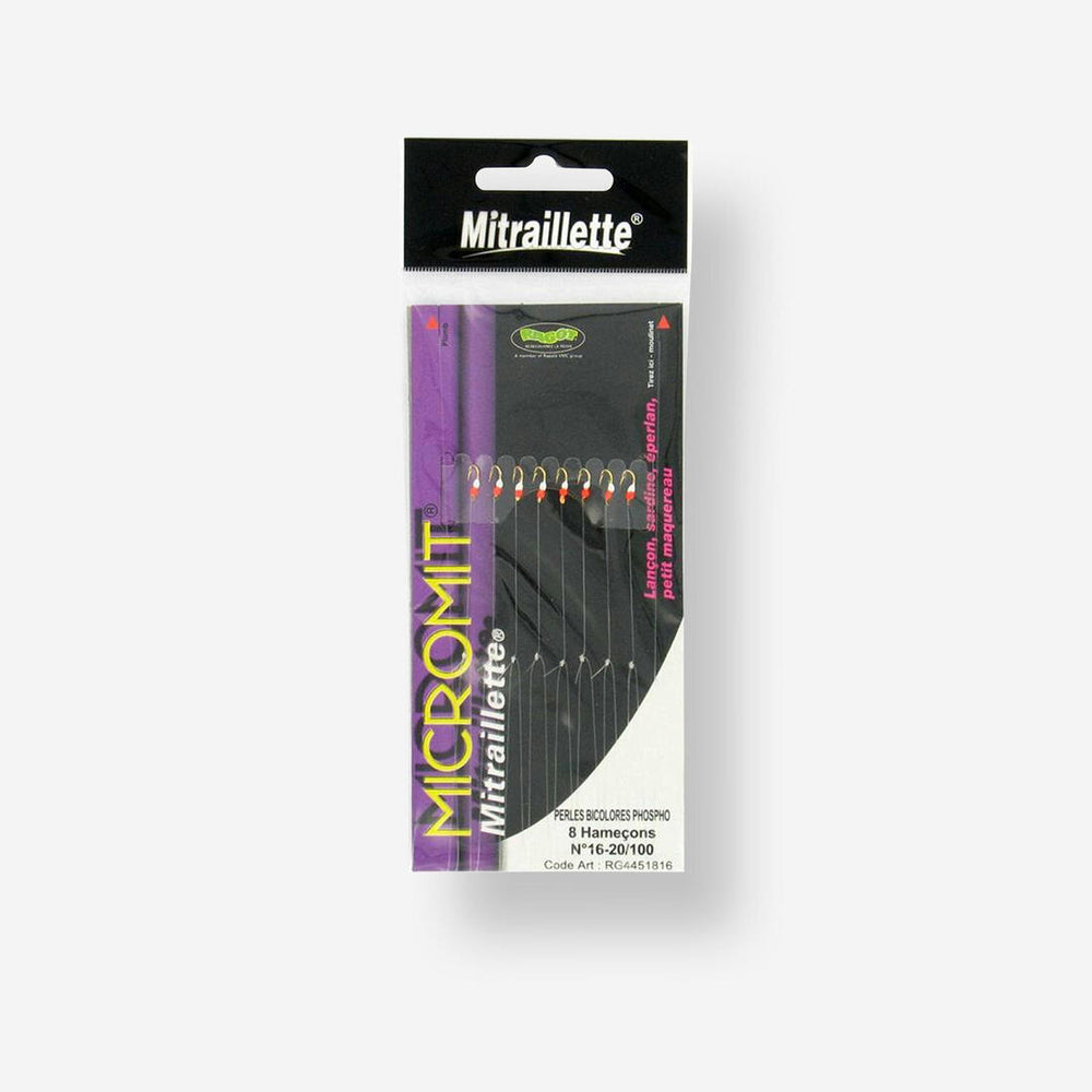 Ligne montée prête à pêcher, composée d'un bas de ligne en 20/100 et de 8 hameçons N°16. Efficace en dandine verticale sur de nombreuses espèces marines.
