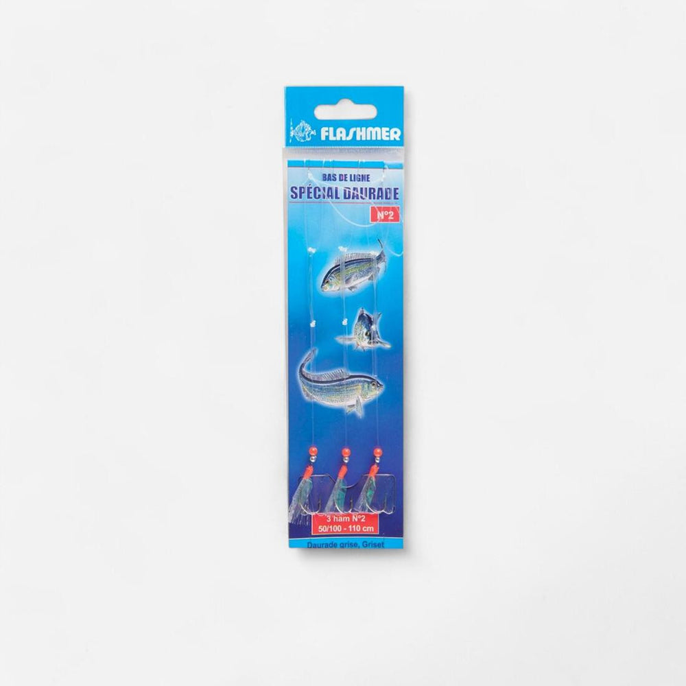 - 3 hameçons N°2 - Diamètre de ligne : 50/100 - Longueur bas de ligne : 110 cm - Longueur des empiles : 6 cm - Adapté aux Daurades grises, Grisets