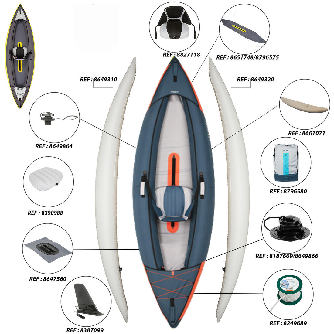 Les kayaks Itiwit disposent de pièces en service après vente. Veuillez vous présenter à l'atelier d'un magasin Decathlon pour en disposer ou pour les commander.