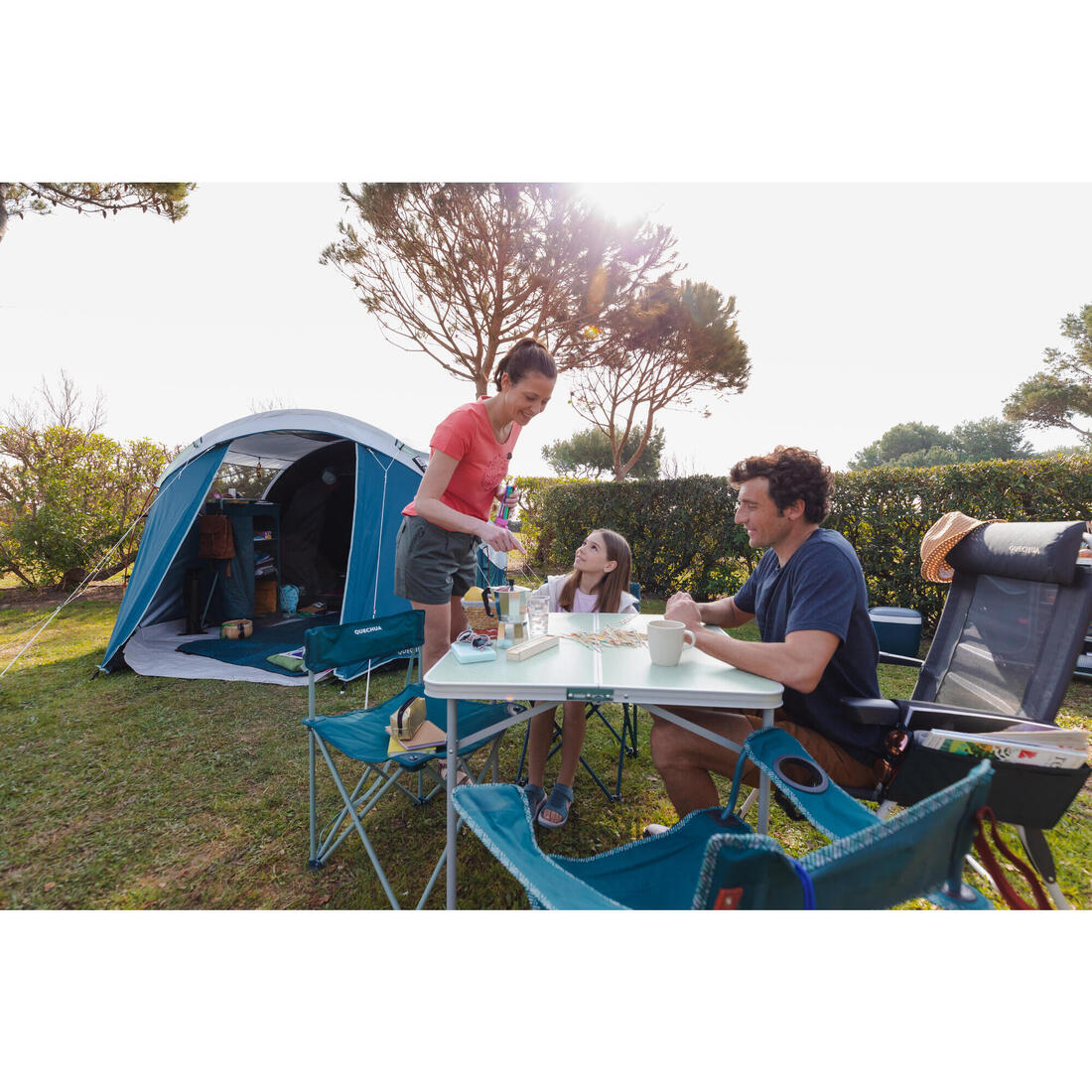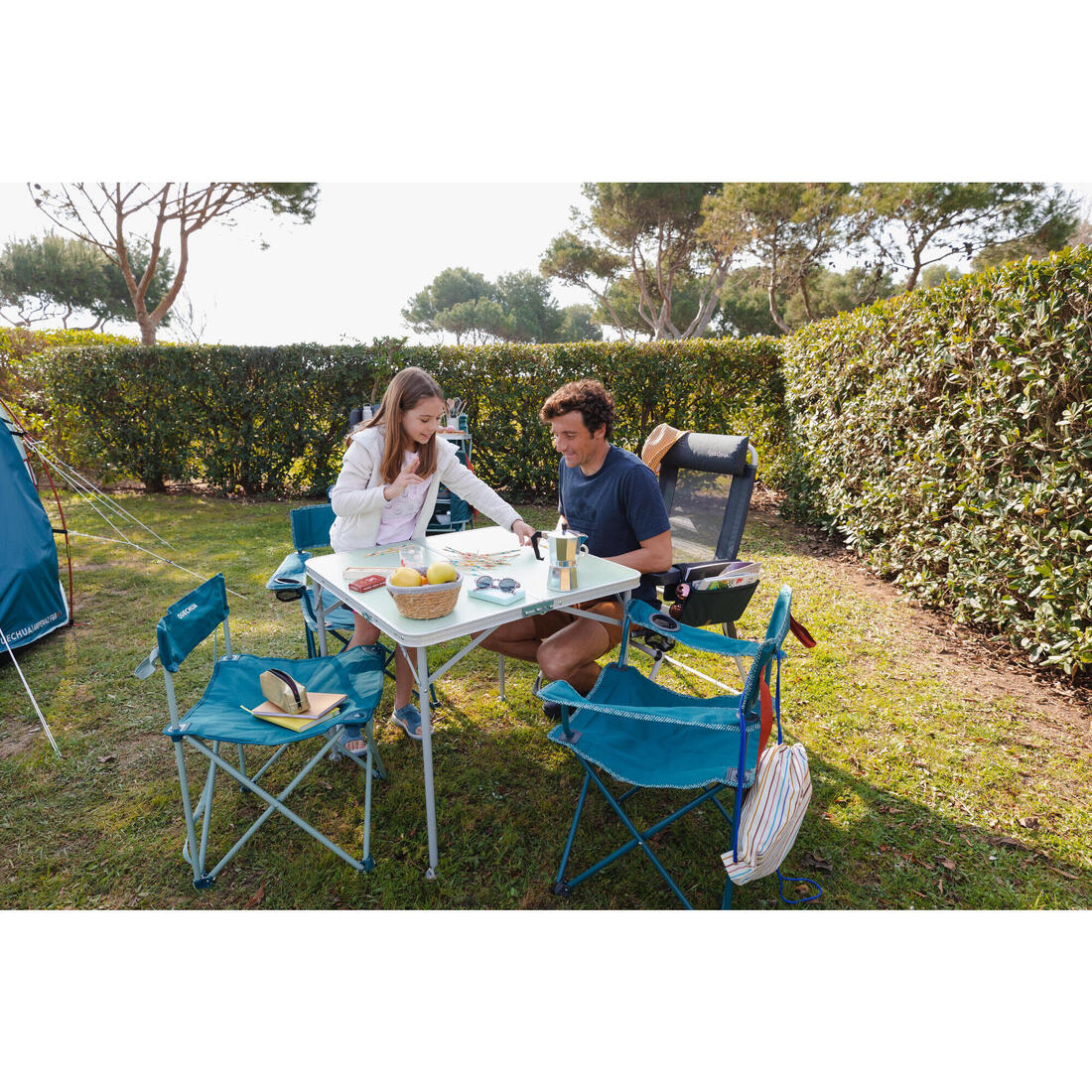 Nos chaises de camping vous accompagnent au camping ou en pleine nature. Elles ne sont pas conçues pour une exposition prolongée aux UV et à l'humidité. Pensez à la ranger dans un endroit sec après chaque utilisation.
