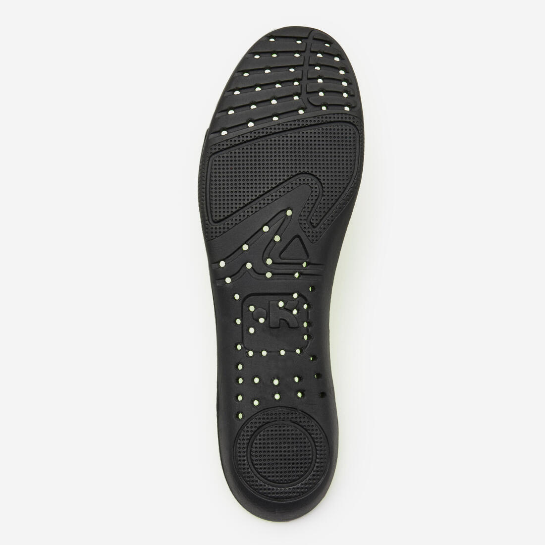 2 ans d'étude et de recherche avec nos experts pour développer cette toute nouvelle semelle MG/AG, conçue spécialement pour les terrains synthétiques courts et longs. Crampons multidimensionnels, FLEX-H sur l'avant du pied pour une meilleure flexibilité, et une accroche améliorée grâce à l'ajout de + sur certains crampons, tout y est pour maitriser son ballon et ses déplacements!