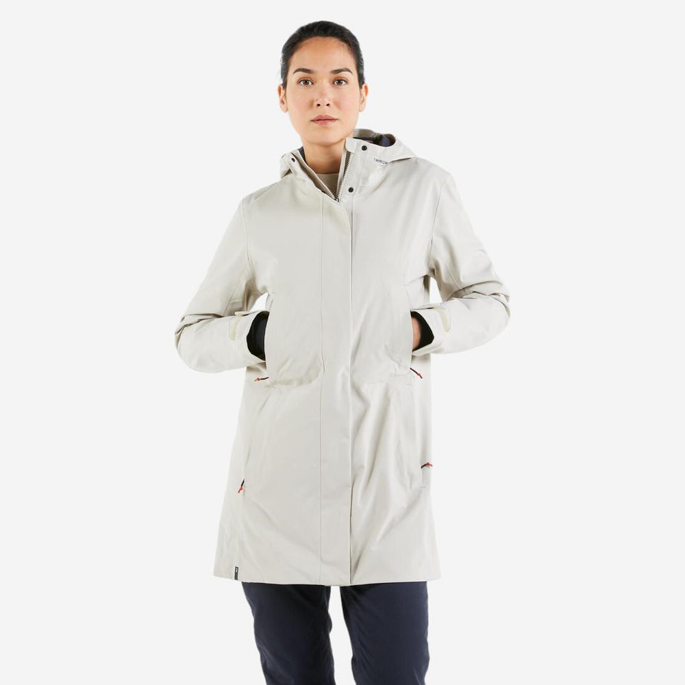Cette veste de voile longue pour femme est conçue pour la navigation côtière par temps pluvieux, frais et venteux.