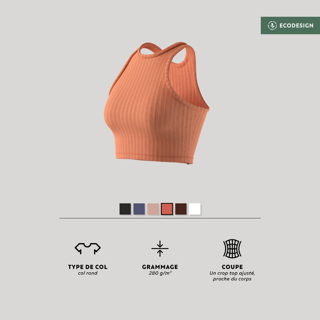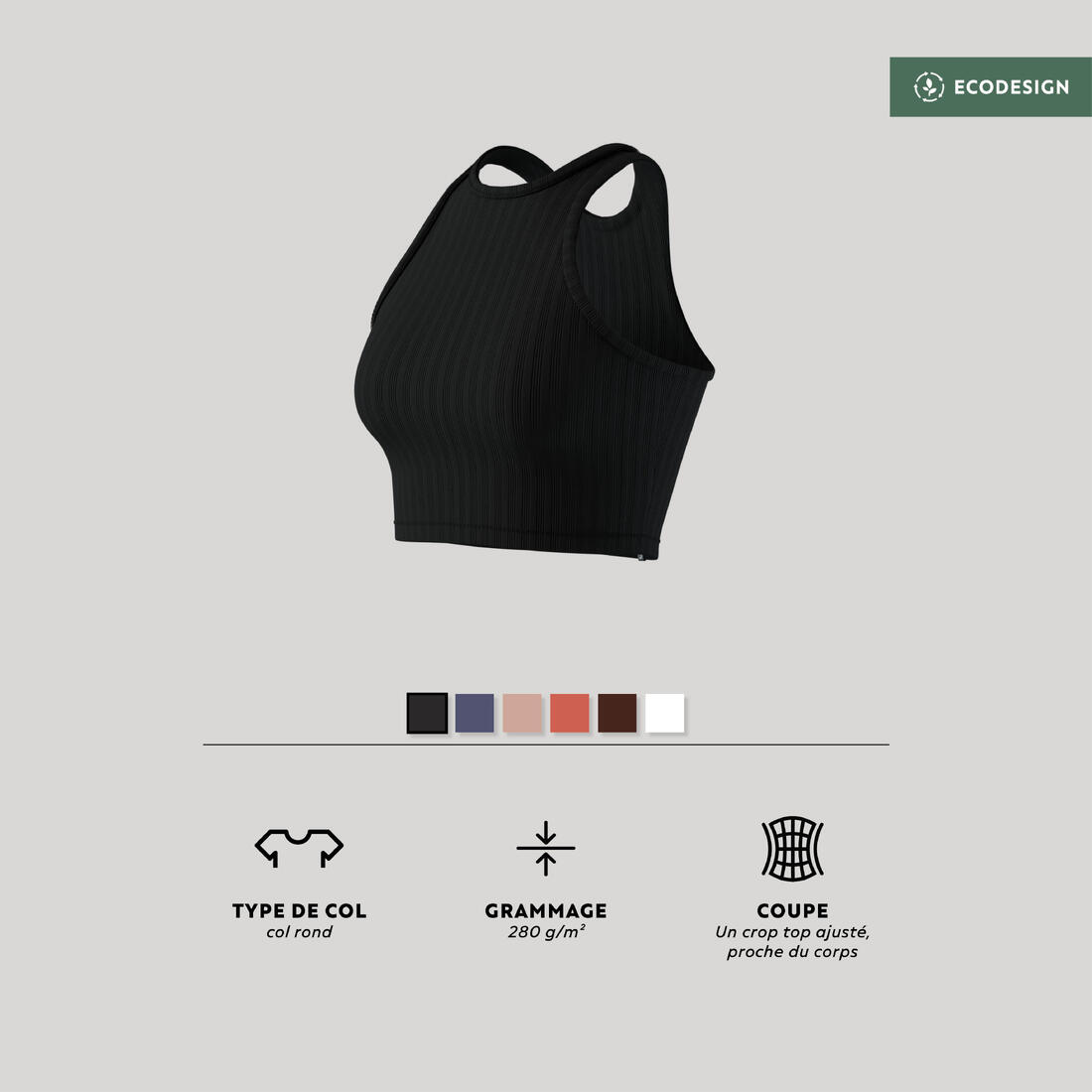 Notre équipe de passionné.e.s a conçu ce débardeur moulant et crop pour femme pour avoir du style pendant vos séances de sport.