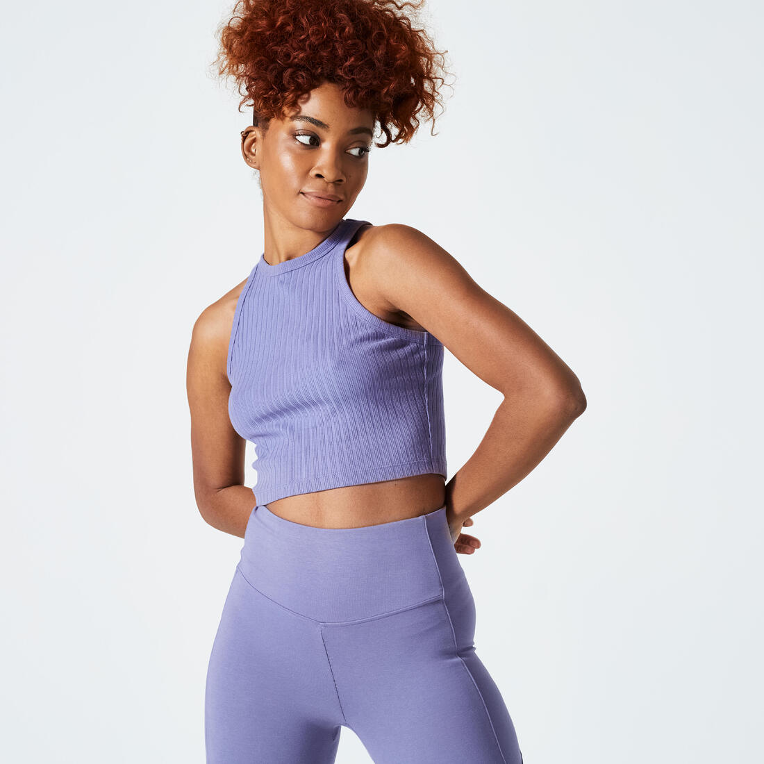 Ultra tendance, ce débardeur crop pour femme avec son effet cotelé est aussi hyper confortable. Vous pouvez affirmer votre style pour toutes vos séances de sport, et même en dehors !