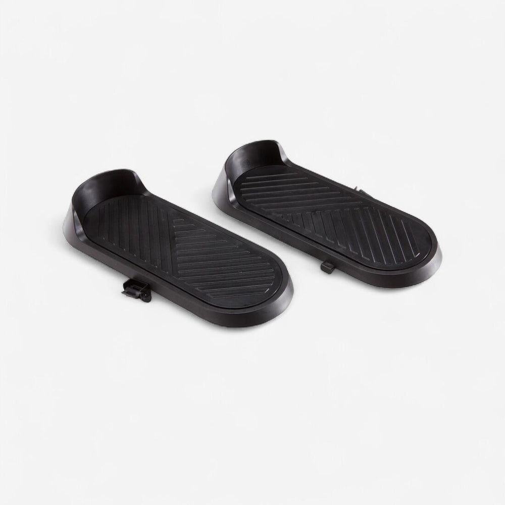 Paire de repose-pieds avec sangles permettant le bon maintien des pieds lors de l'utilisation.