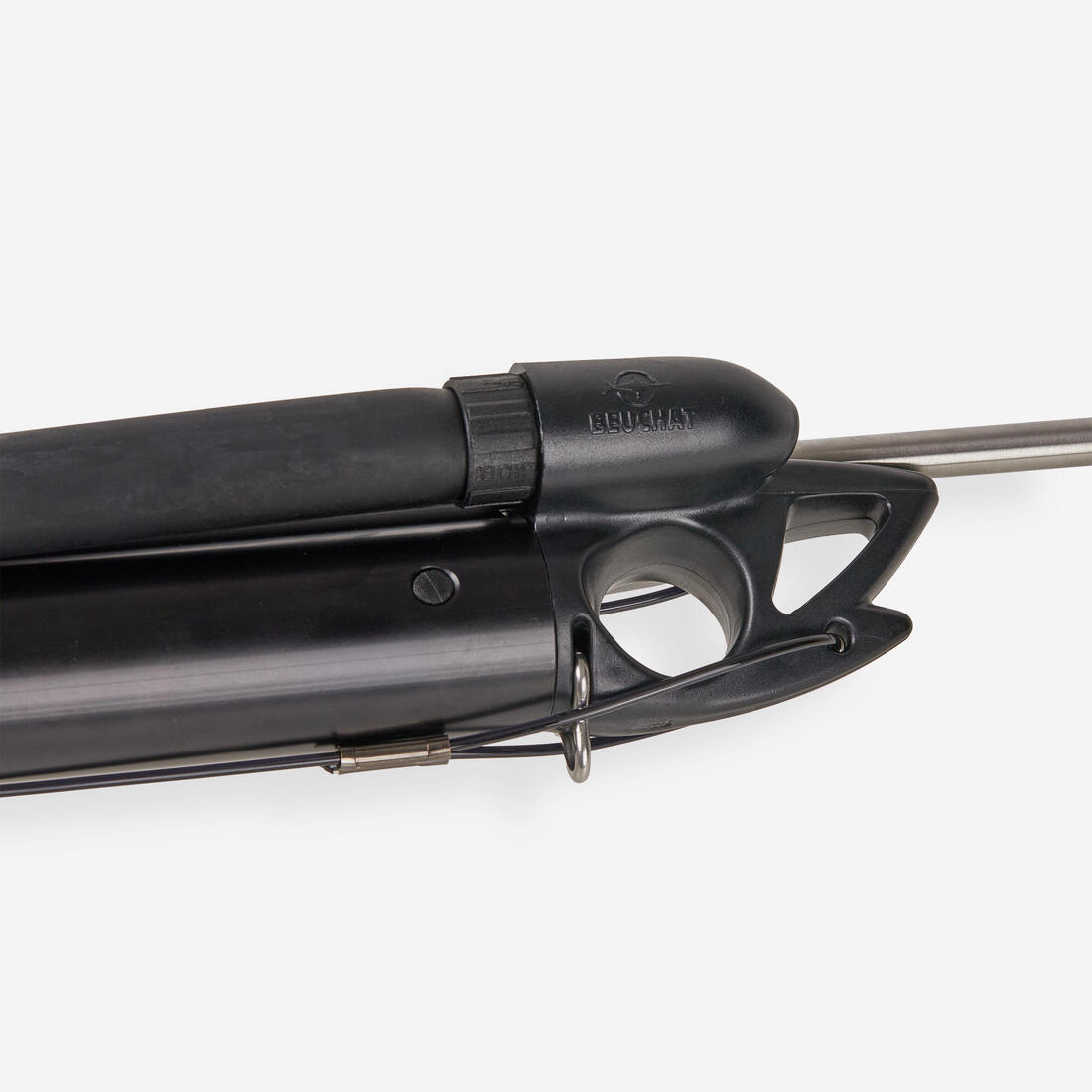 Cette arbalète de chasse sous-marine à tête fermée, tube 28 mm en aluminium, assure un tir précis par son rail guide flèche intégral.