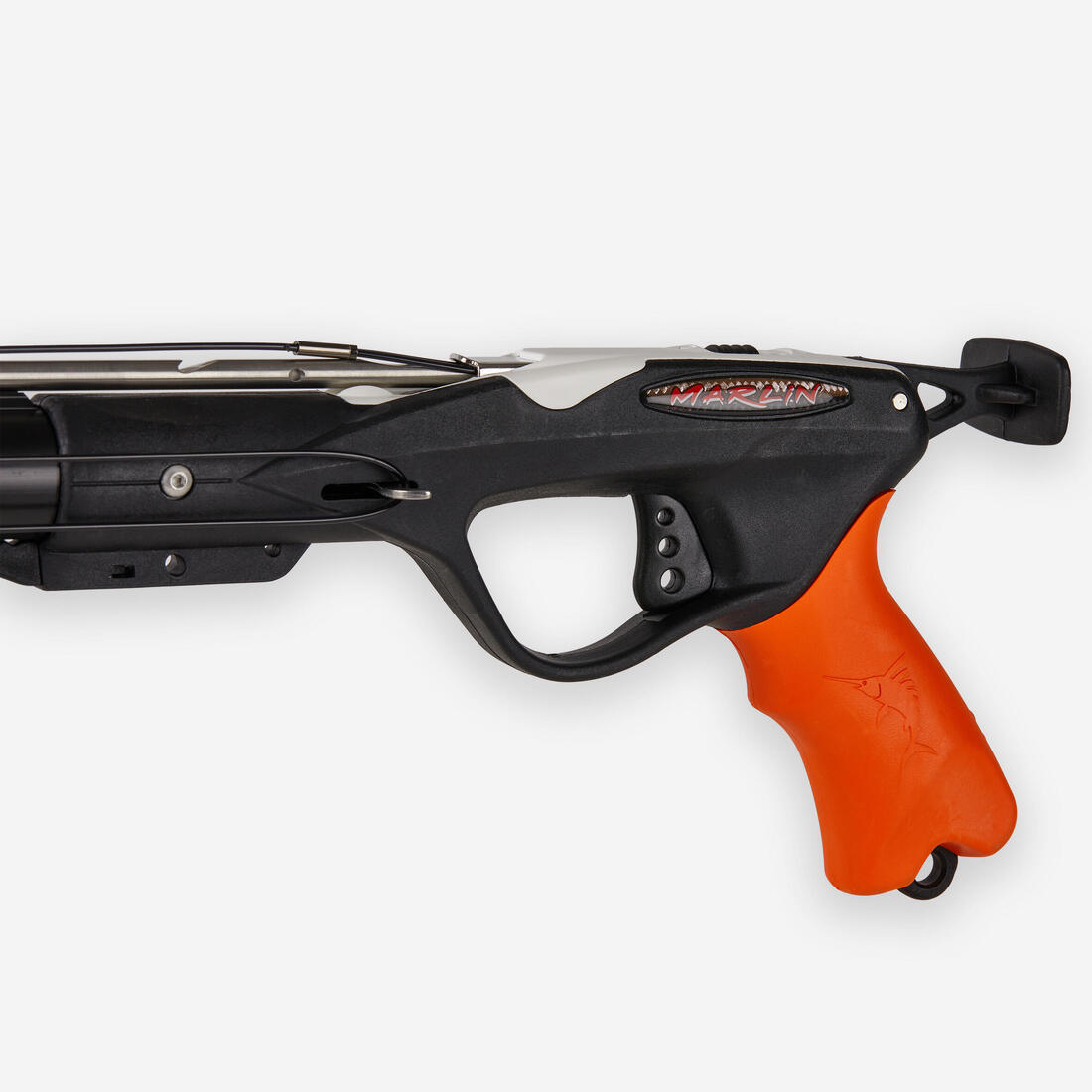 Tube aluminium de 28 mm avec guide flèche intégral pour optimiser la puissance et augmenter la précision du tir Tête fermée Crosse "Marlin" haut de gamme offrant une bonne prégnance et une bonne maniabilité Support moulinet Flèche tahitienne inox de 6,5 mm Sandow de 16 mm Obus articulé Talon de chargement.