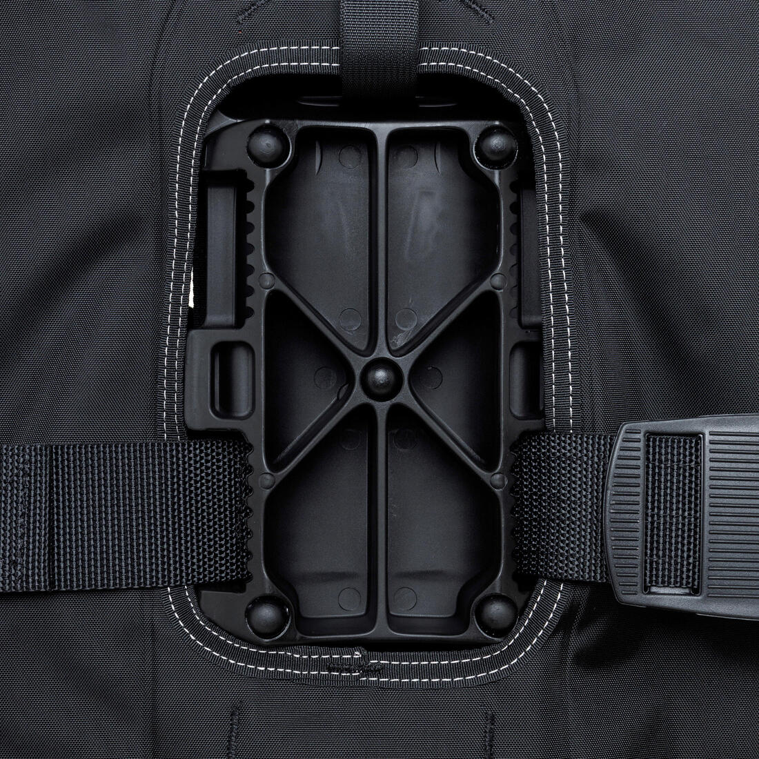 Ce gilet est équipé d'une vessie enveloppante. Le type de connexion du gilet au harnais permet à la vessie gonflable de s'étendre vers l'extérieur. Grâce à cette conception spéciale, la compression de la poitrine pendant les plongées est évitée.