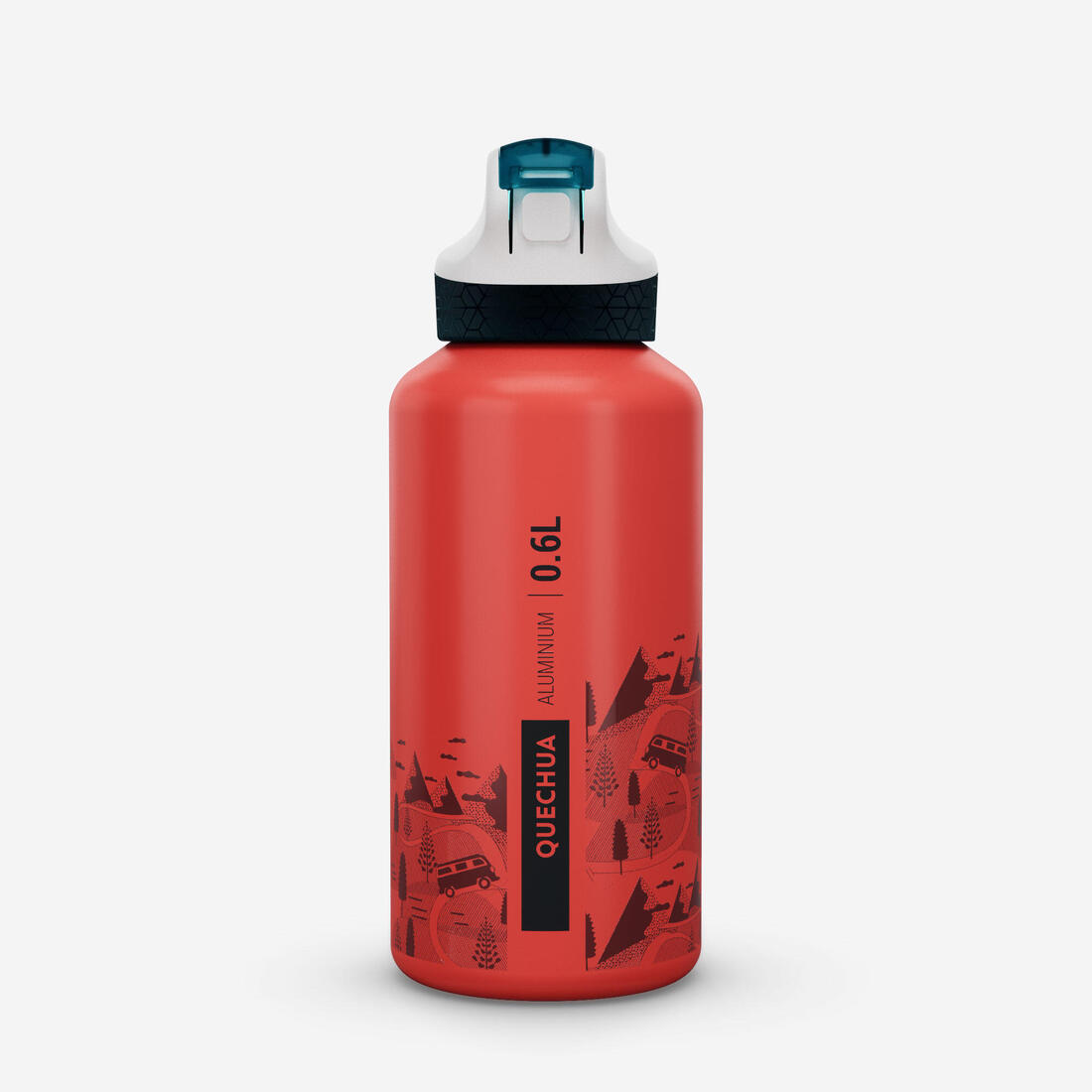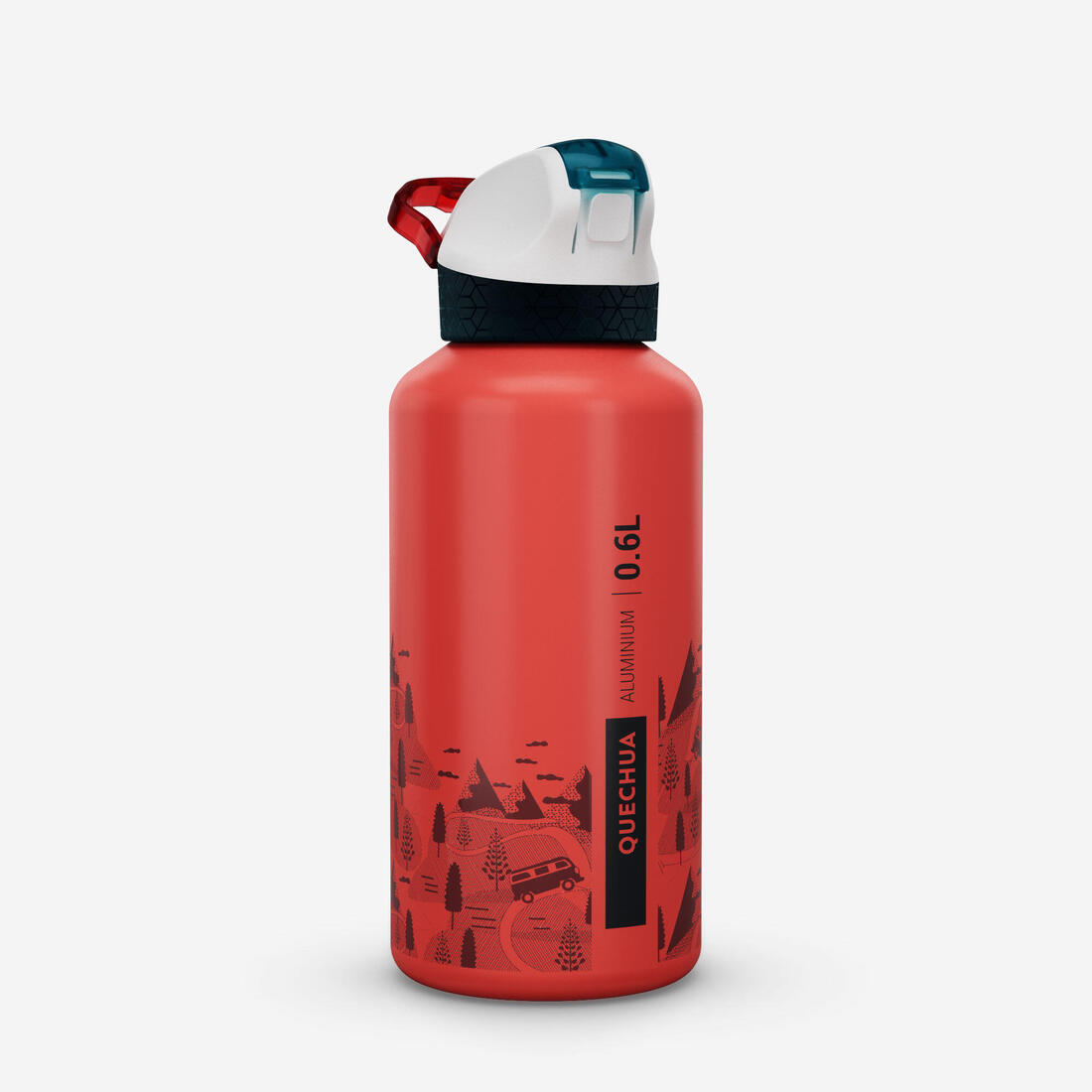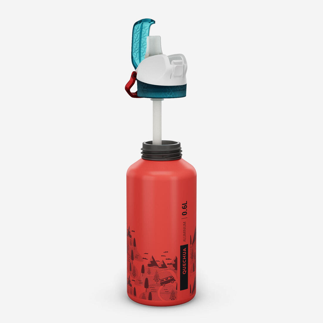 Gourde 500 enfant 0,6L en alu, bouchon instantané, pipette et paille, randonnée