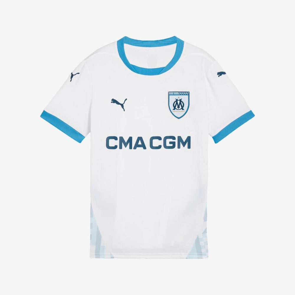 Habille-toi comme les Olympiens avec le maillot Domicile officiel pour la saison 24/25. Réplique du modèle porté par Pierre-Emerick Aubameyang et les joueurs de l'Olympique de Marseille.