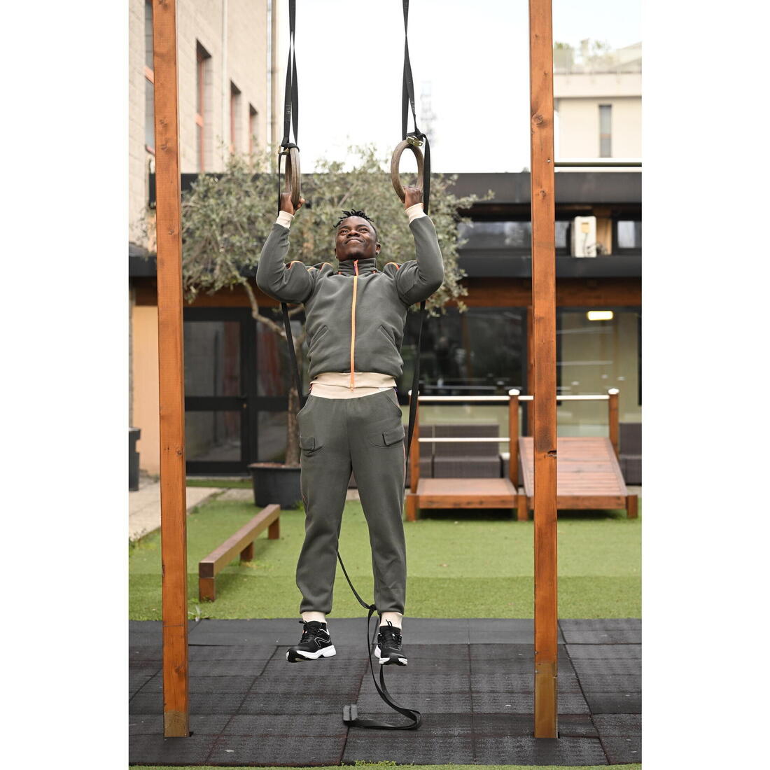 Pour faciliter l'habillage, un bandeau permet de maintenir les 2 parties du jogging pendant que vous zippez votre pantalon.