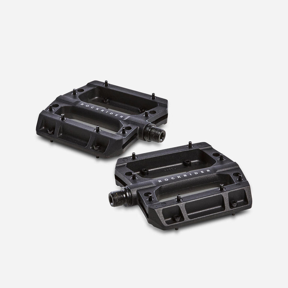 Fabriquées en résine, les pédales plates VTT 700 limitent le risque de blessure sur vos tibias et vos mollets en cas de retour de pédale intempestif.
