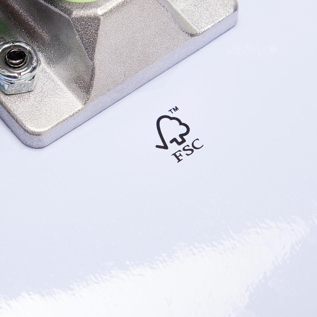 Plateau en 6 couches de bouleau. Nous avons choisi de mettre 6 couches de bois, là où normalement on en utilise 7, sans dégrader la solidité de la planche. Cela permet de proposer une planche plus légère, réactive et adaptée à la stature des enfants de 4 à 7 ans. Colle américaine Multibond EZ1 Longueur : 709mm / 27,9" Largeur : 184mm / 7.25" Epaisseur : 8,5mm +/- 0,5mm Empattement : 294mm / 11,57" Nose : 159mm Tail : 149mm