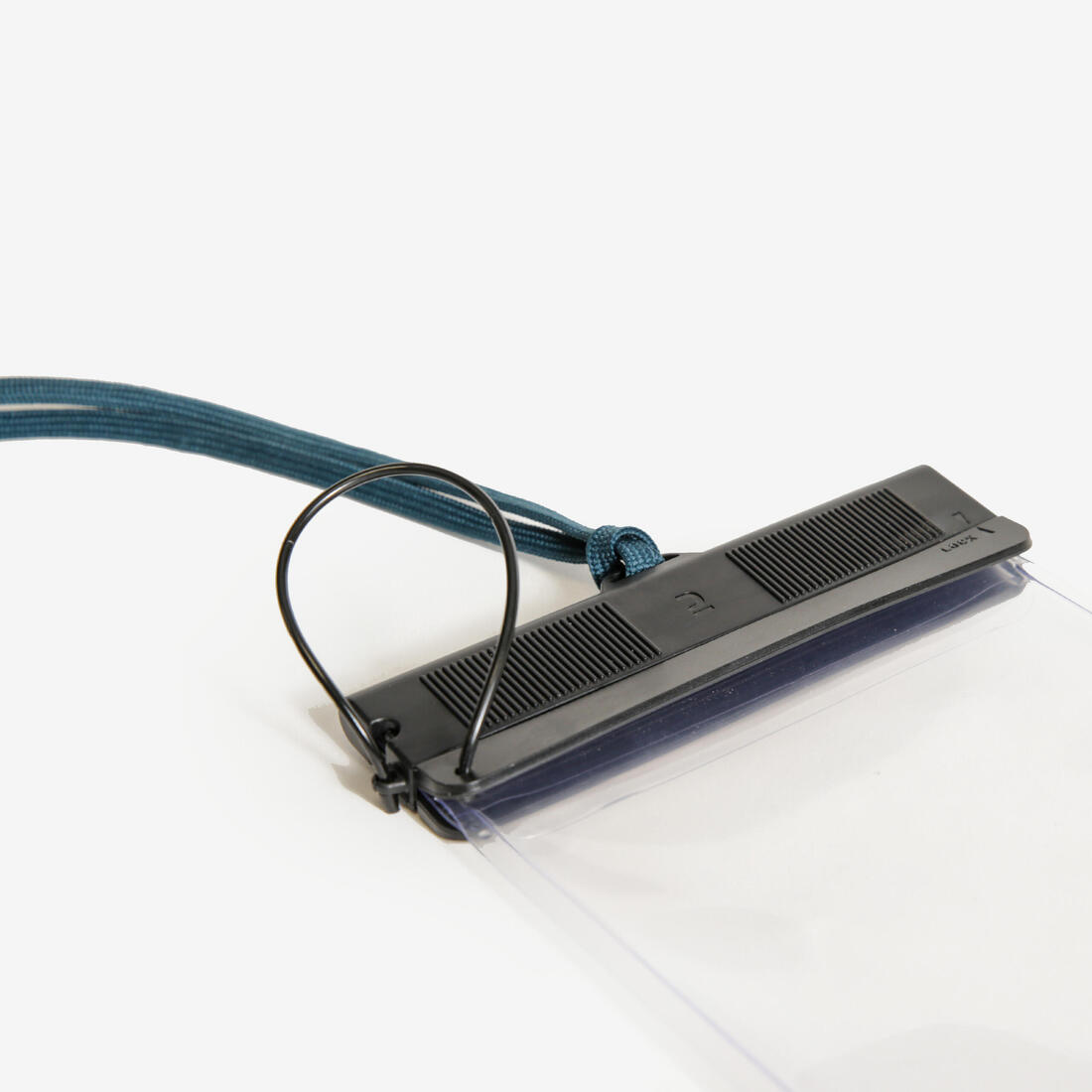Faites glisser la barrette. Dépliez le film. Insérez le téléphone en écartant les parois. Repliez le film. Remettez la barrette soigneusement jusqu'au bout (vous devez entendre le « click »). Vérifiez régulièrement l’étanchéité de la pochette avec un papier absorbant.