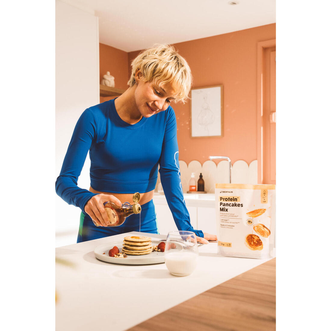 Pas le temps ni l'envie de trainer en cuisine avant ou après votre séance de sport ? Préparez ces pancakes en 5 minutes, sans concession sur la gourmandise. Pour trois pancakes, diluez 45 g de la préparation en poudre dans 120ml de lait ou boisson végétale. Mélangez et laissez reposer 4 minutes environ. Dans une poêle chaude et préalablement huilée, faites cuire les pancakes sur les deux faces, jusqu'à ce qu'ils soient bien dorés.