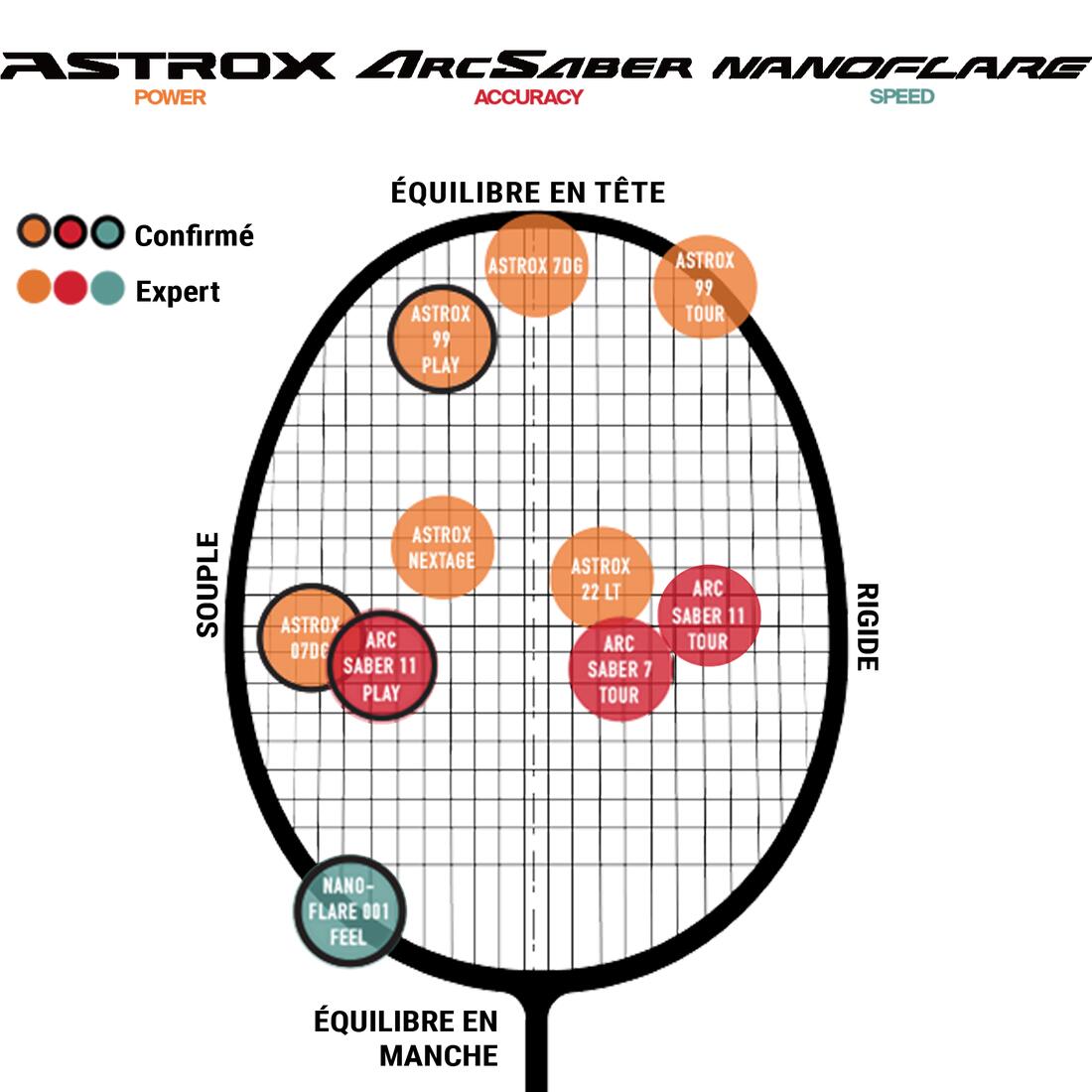 Conçu pour le joueur de badminton intensif à la recherche d'un bon compromis puissance/maniabilité et de précision