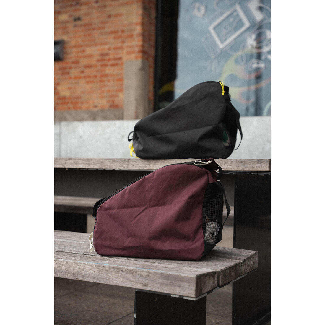 Léger et parfaitement adapté pour ranger et transporter des rollers ou patins à glace enfant, avec leurs équipements de protection. Deux sangles, deux styles de portage.