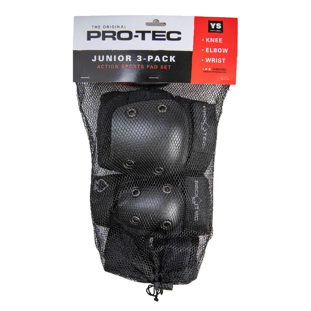 Set 3 protections noires de skateboard pour enfants, pro-tec